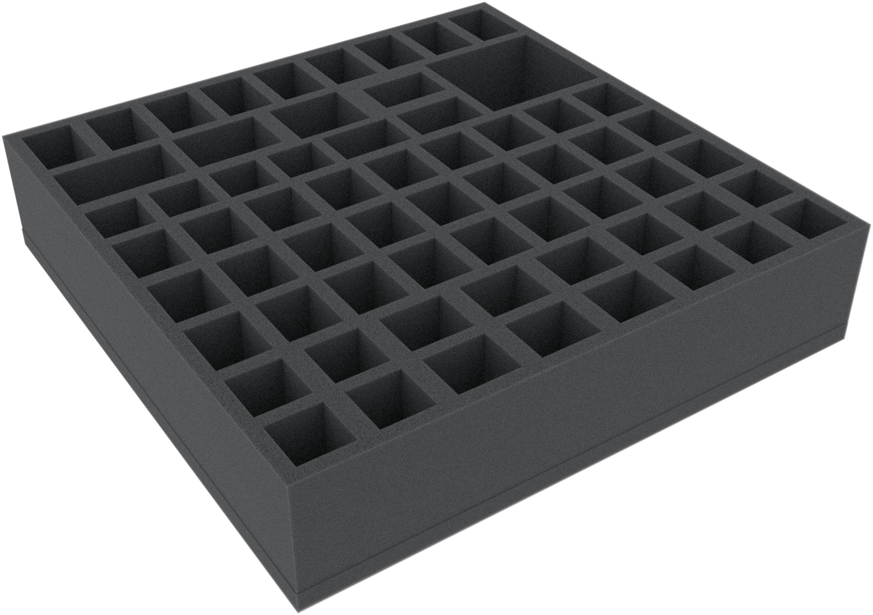 This foam tray has 63 compartments for the safe and orderly storage of your board game miniatures and accessories. The fine-pored foam provides optimal protection against damages.