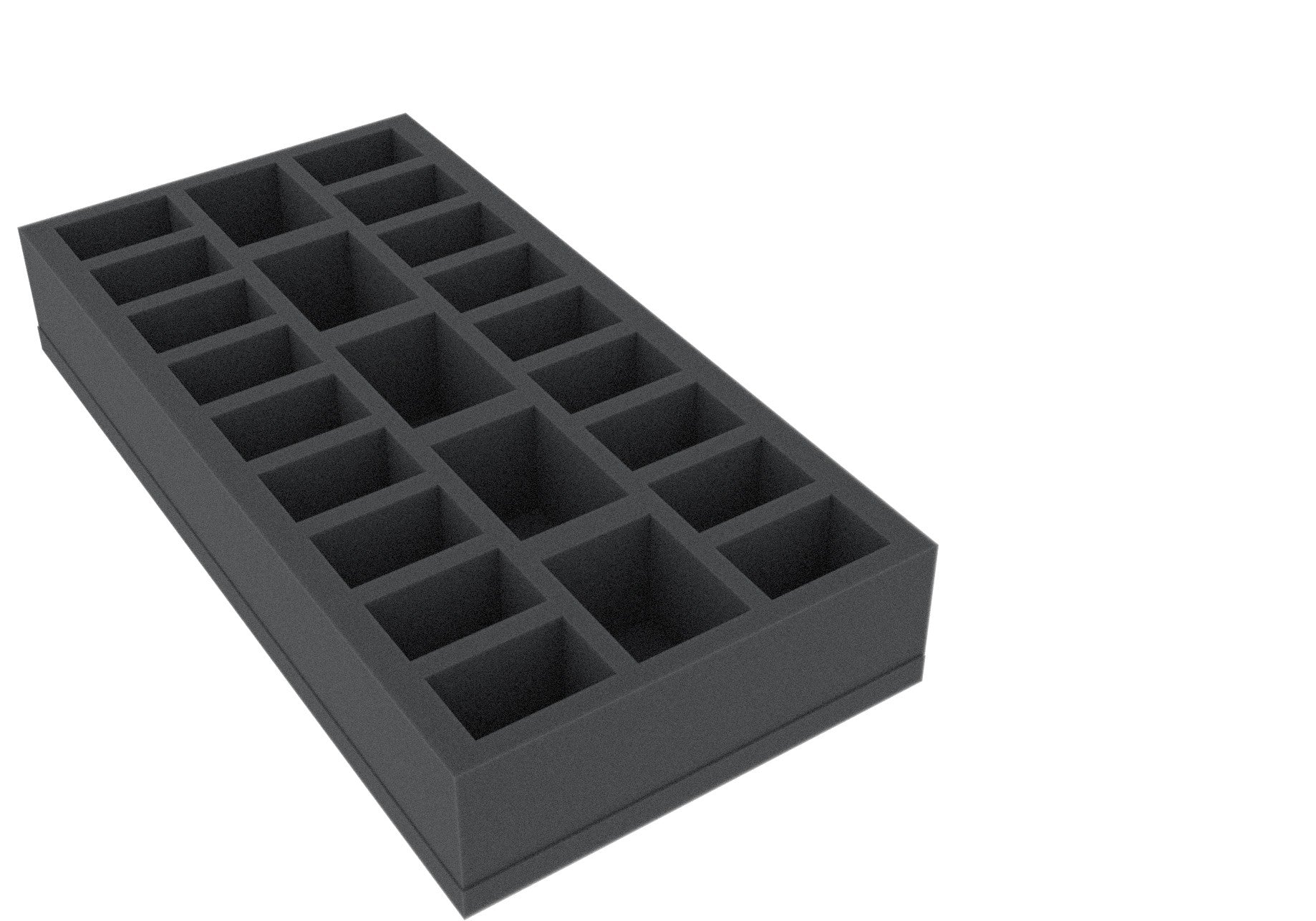 This foam tray suitable for retrofitting in many original board games boxes. The 23 different sized compartments are suitable for all conceivable game material. So miniatures, markers and dice can be kept in well.