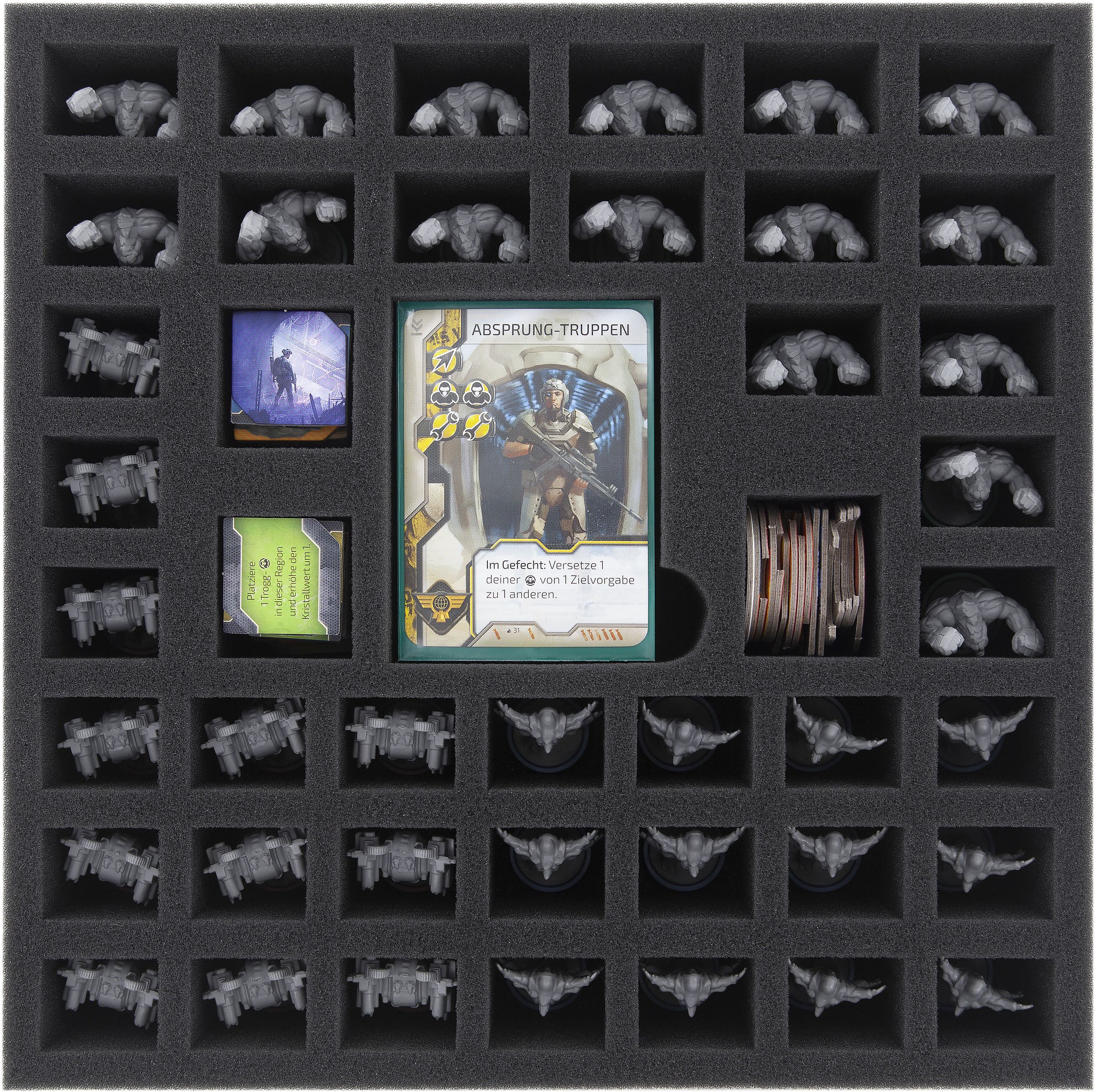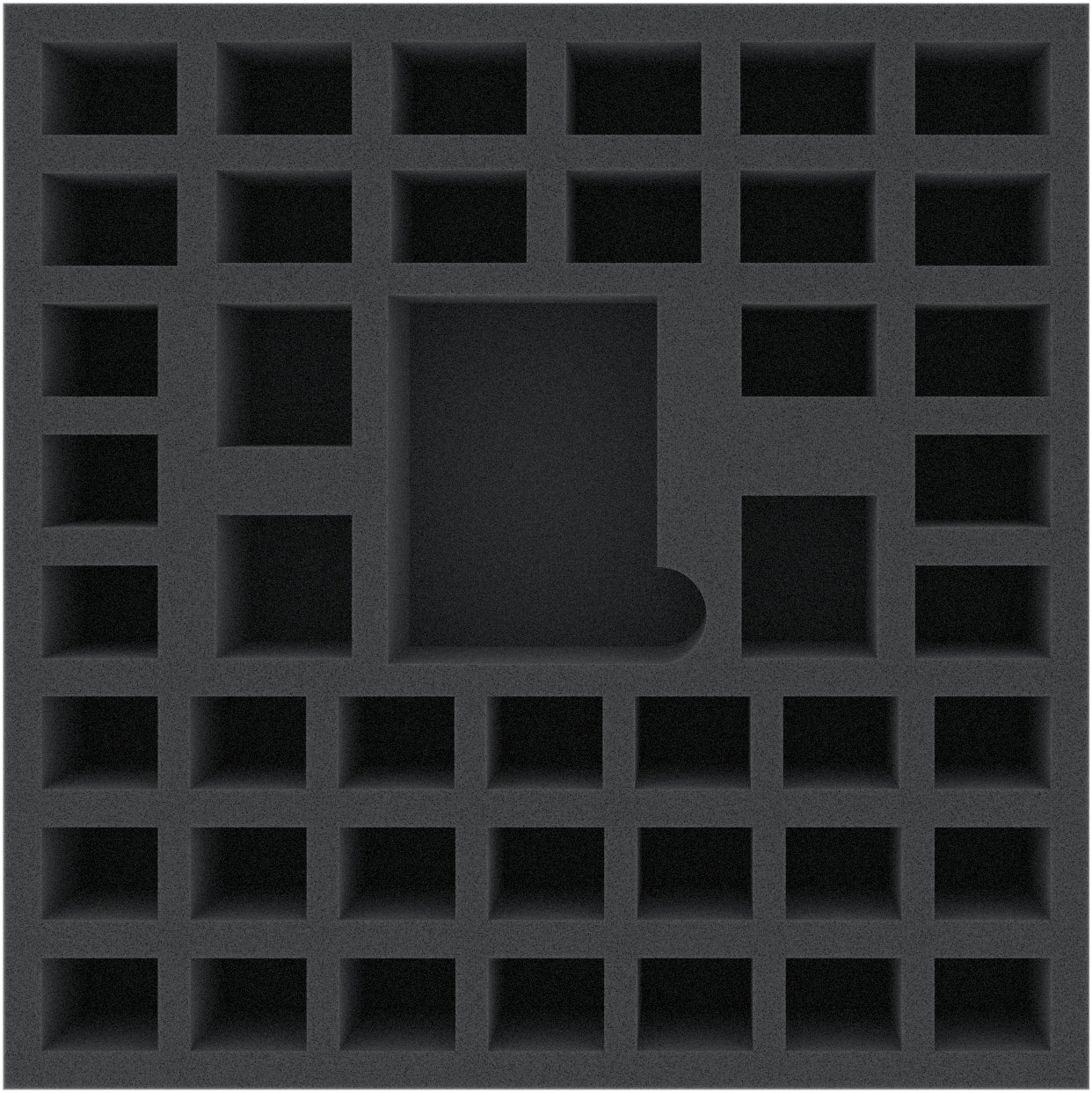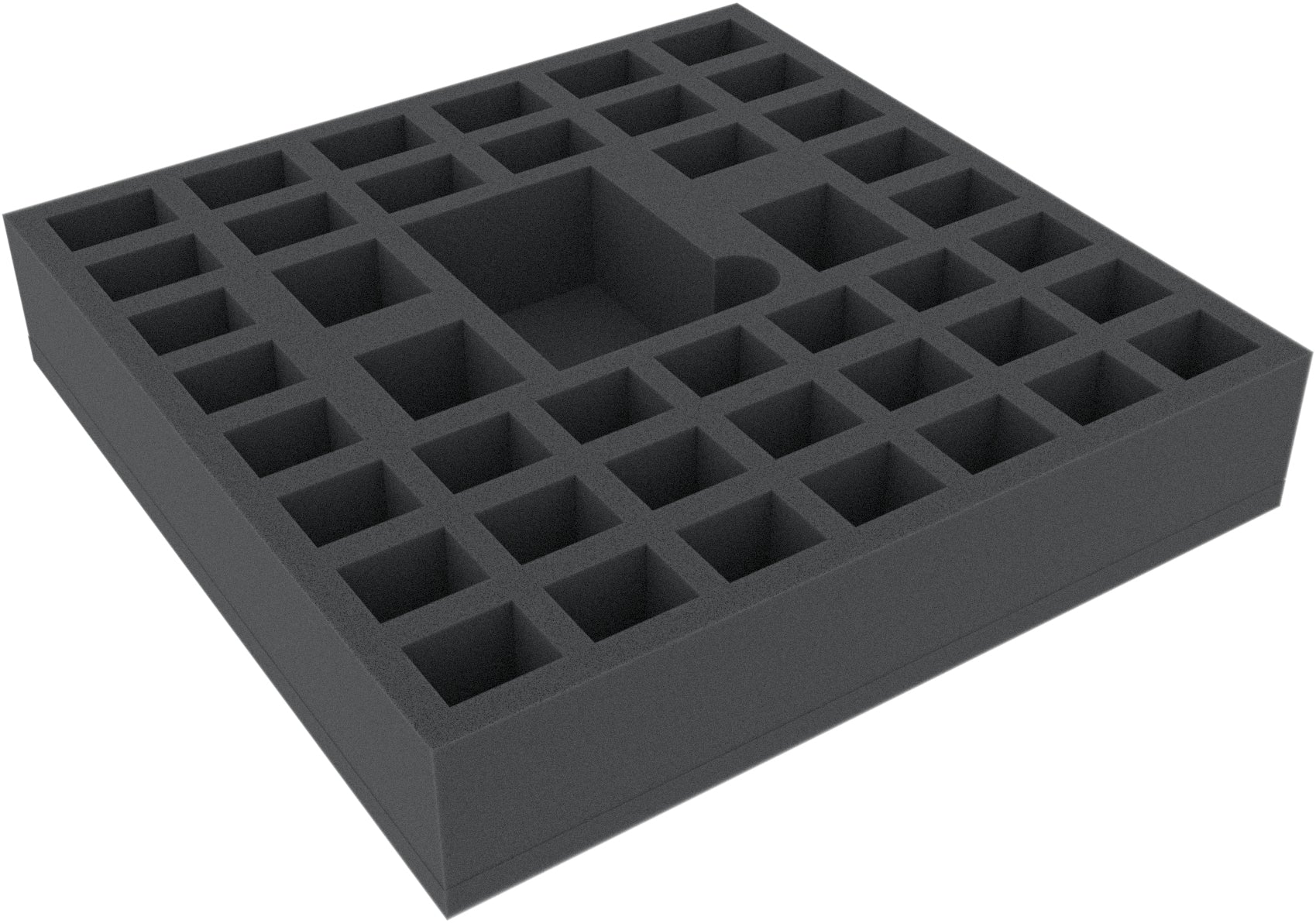 This 55 mm high foam tray is divided into 44 compartments. It is particularly suitable for the safe storage of tabletop and board game miniatures, as well as other fragile models and small parts.