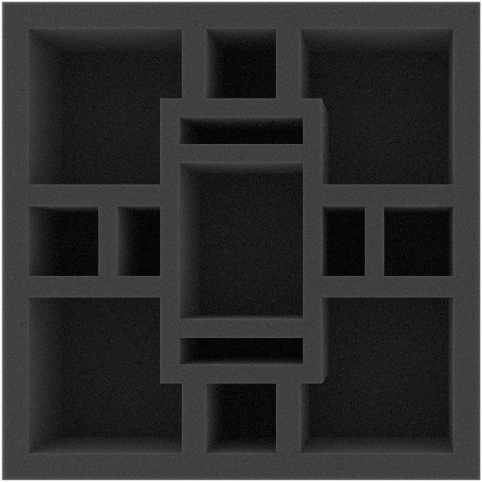 This foam tray is divided into 13 compartments. It is particularly suitable for the safe storage of miniatures and game material. This insert is also suitable as an inlay for the large compartment of the AFLC100BO.