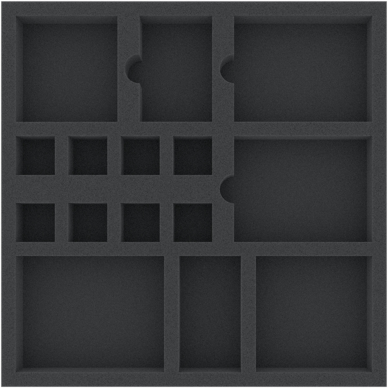 This foam tray has 15 compartments for the safe storage and clear organization of board game accessories like dice, tokens, markers and cards. The compartments for the cards feature special recesses for easy take-out.