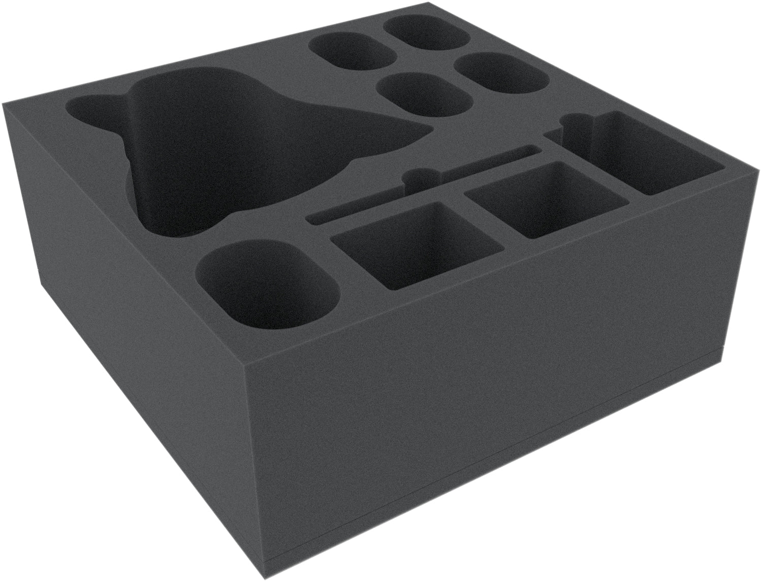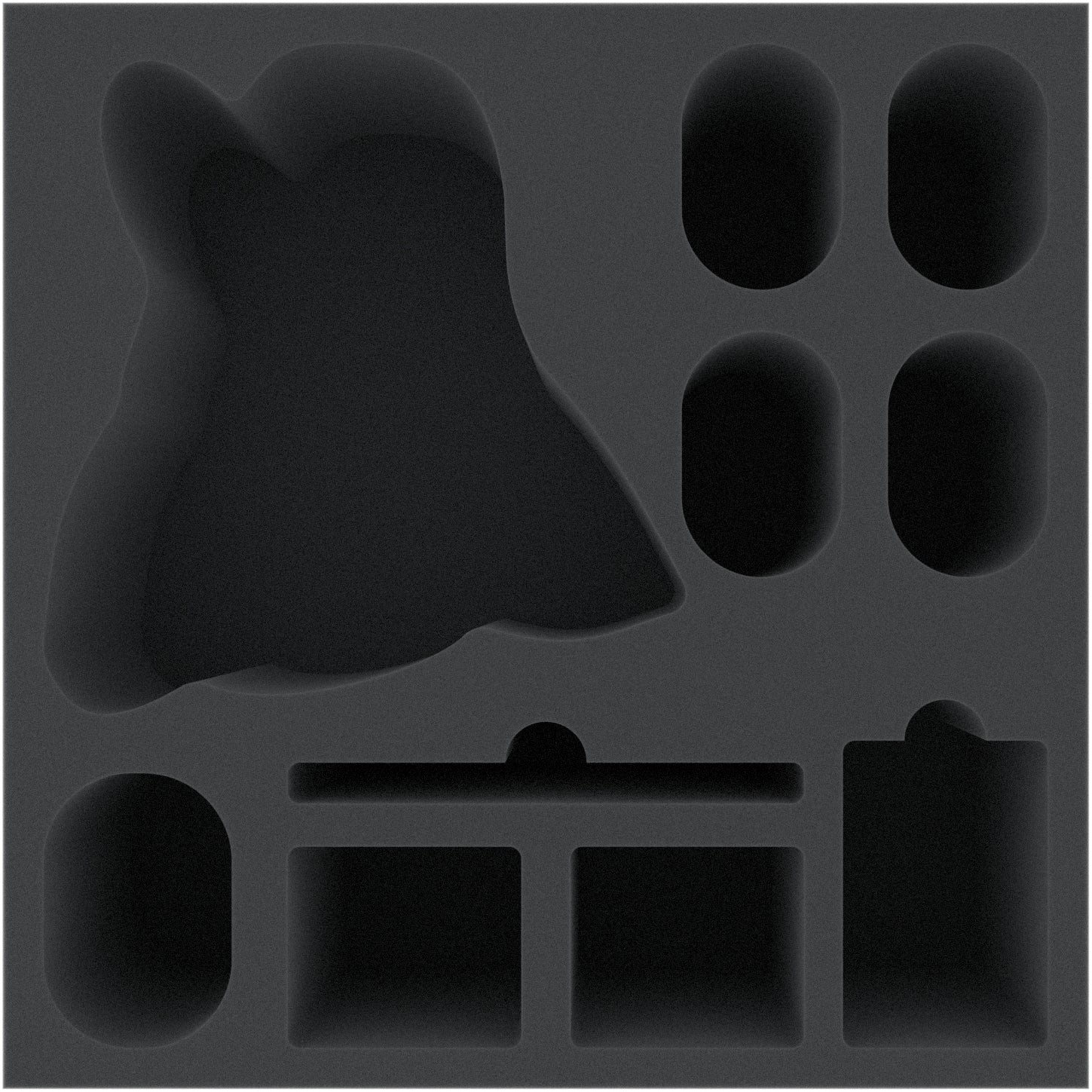 - The foam tray has the dimensions: 265 mm x 265 mm x 110 mm total height (100 mm usable height + 10 mm foam base)