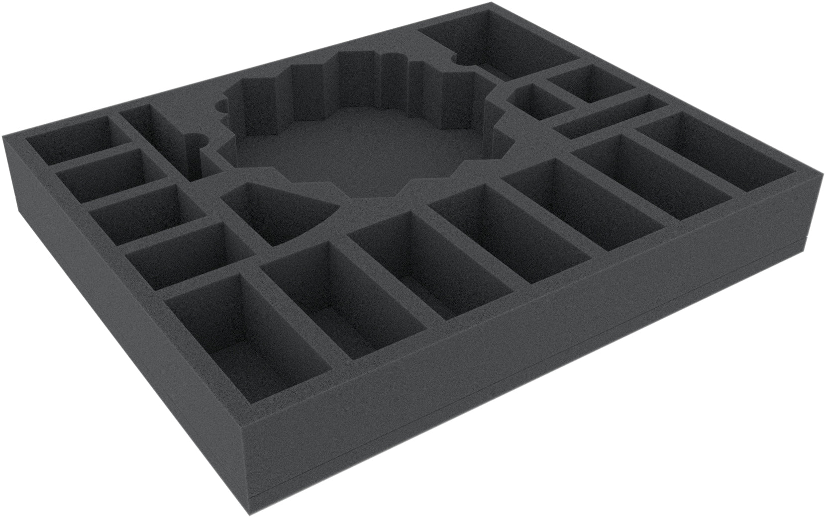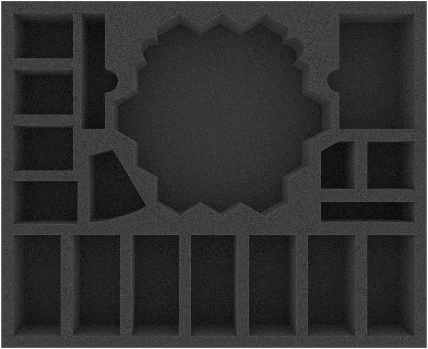In addition to the 19 compartments, the tray features a slot for the removable, custom cut Feldherr insert CLMEHX020BO, which will hold further small game components.