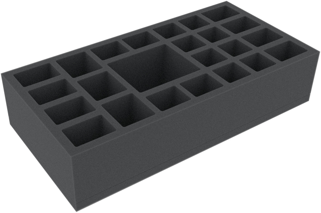 This foam tray is divided into 24 compartments of different sizes. It is particularly suitable for the safe storage of miniatures from various board games. The insert can also be used for sorting accessories like tokens.