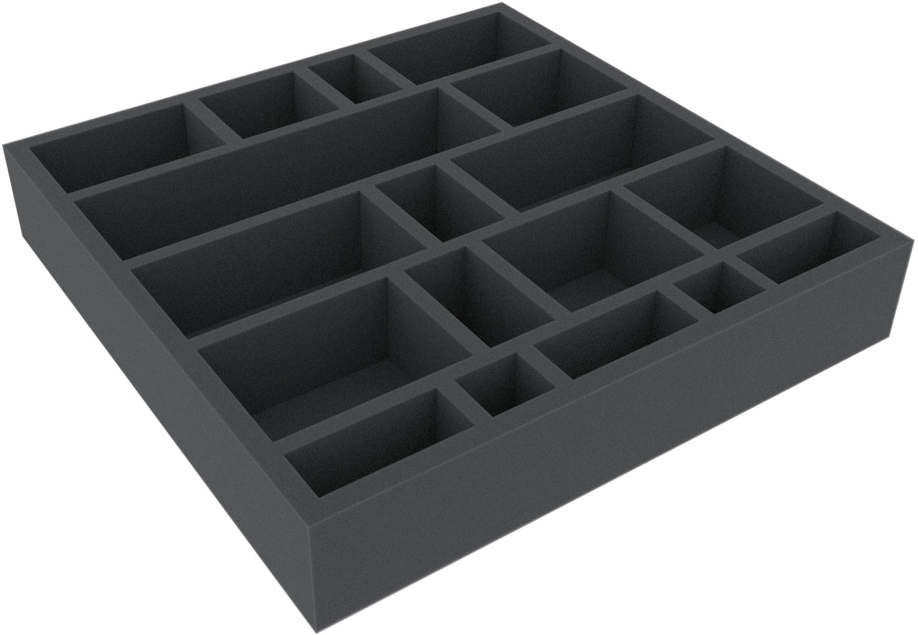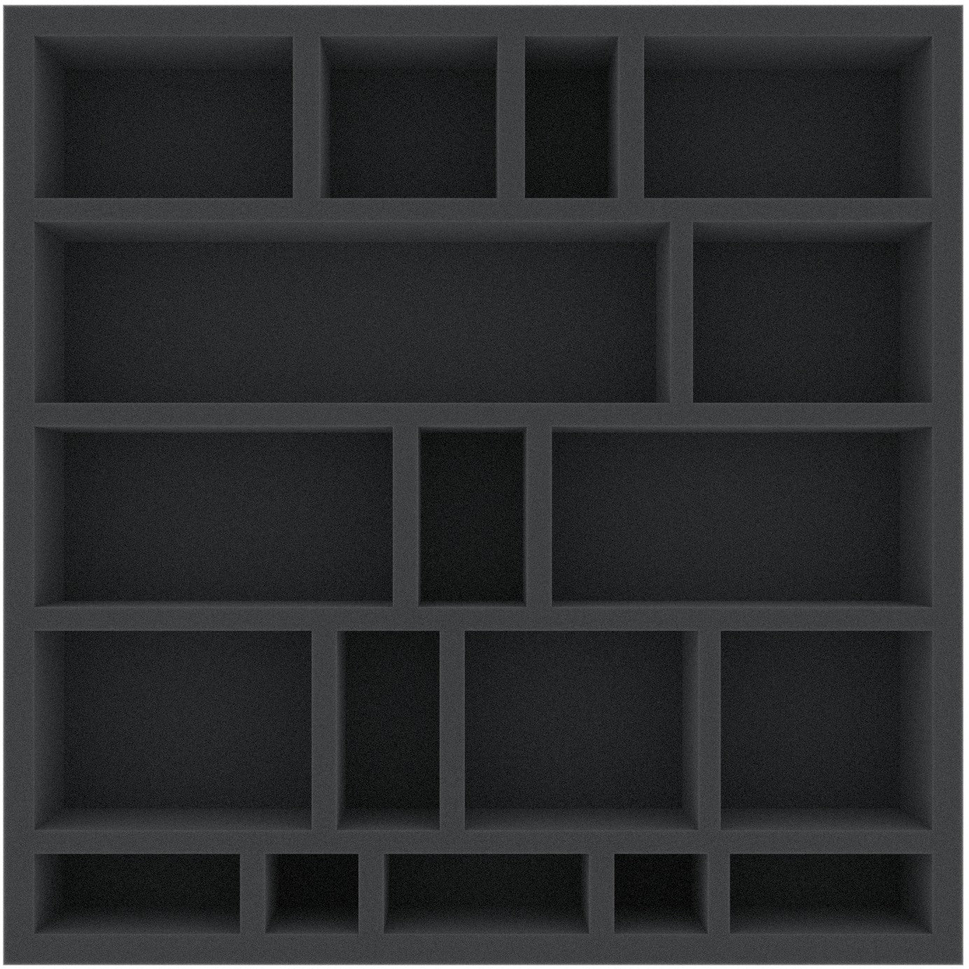This insert has enough compartments for all terrain pieces and the other cardboard elements as well as the connecting pieces for the installation walls. The "Purge Board" also fits here. The compartments for the terrain pieces are designed so that you can put them together. This will save you time, spare your nerves and reduce wear. The soft foam material ensures that the terrain pieces cannot bend or scratch during storage or transport.