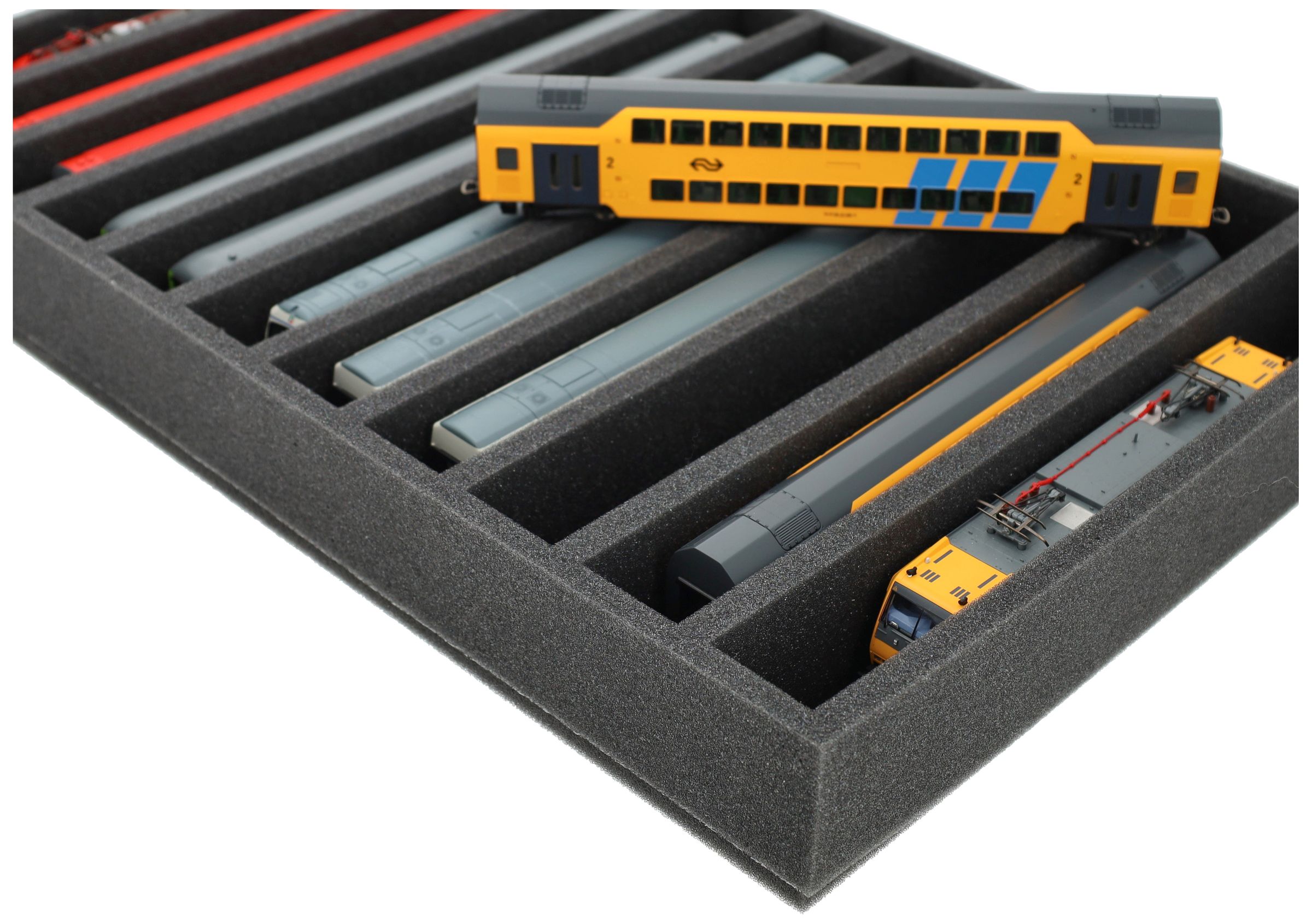 DS065A002 Foam inlay H0 Gauge - vertical - 11 slots for model railway locomotives, wagons and vehicles