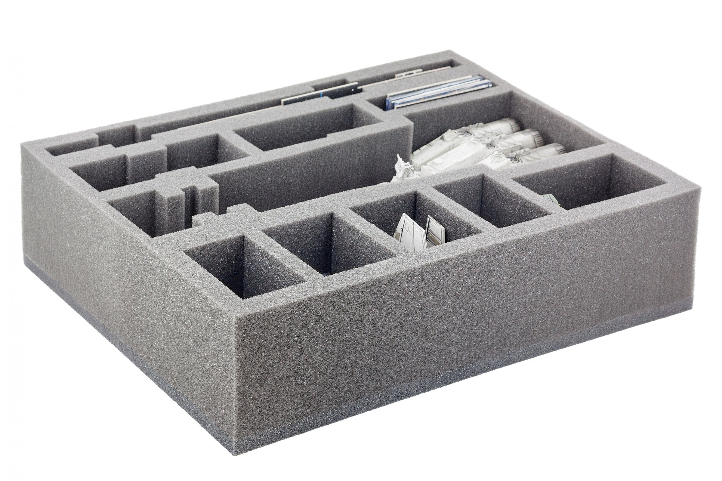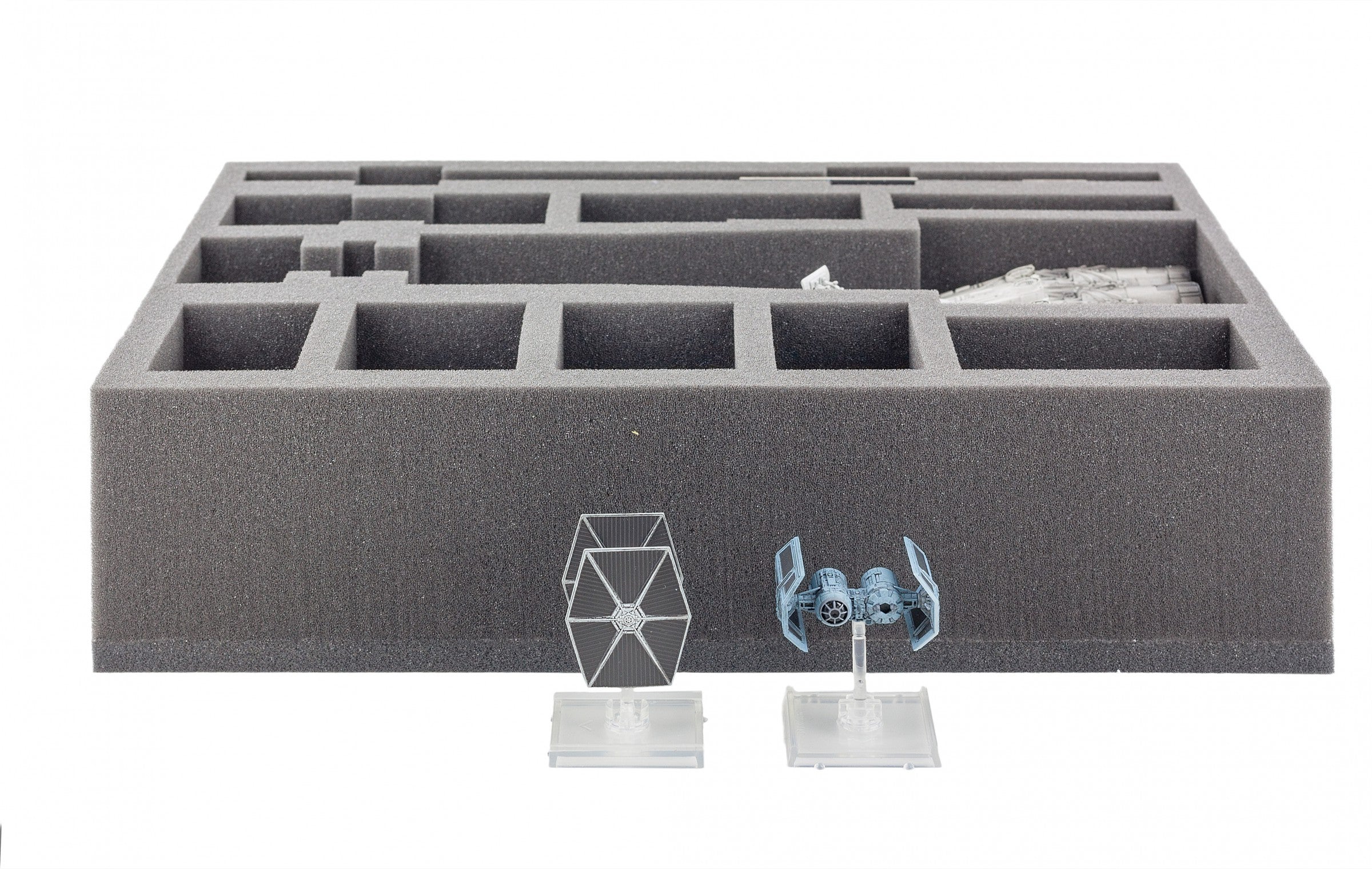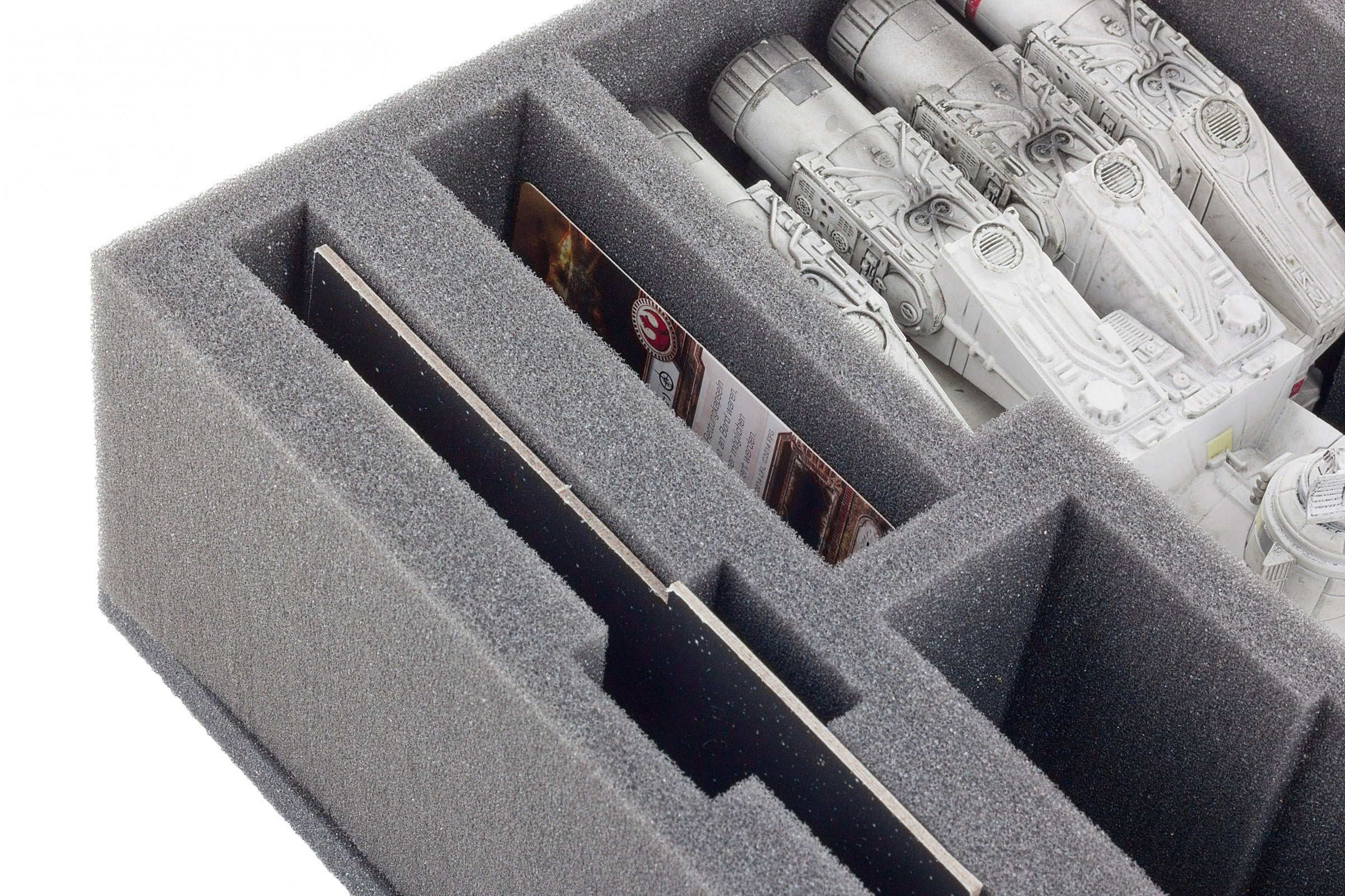 Especialmente para la bandeja de espuma a medida de Star Wars X-WING Tantive IV (CR90). En esta contribución no sólo a la Guerra de las Galaxias X-WING Tantive IV (CR90) se lleva a cabo de forma segura, sino también los accesorios, tales como bases, fichas, soporte y todavía hay espacio para las naves espaciales X-Wing como el HWK-290, Tie Fighter y otros.