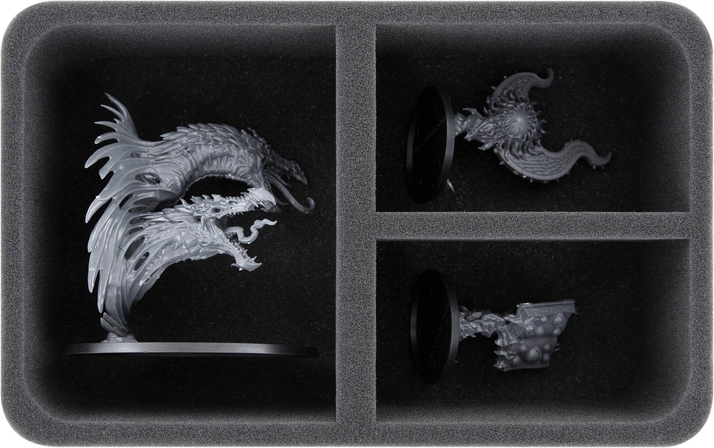 - 1 Half-Size foam tray with 5 compartments for Daemon Prince, Fateskimmer/Burning Chariot of Tzeentch, Pink Horrors and miniatures with similar dimensions (HS105A110)