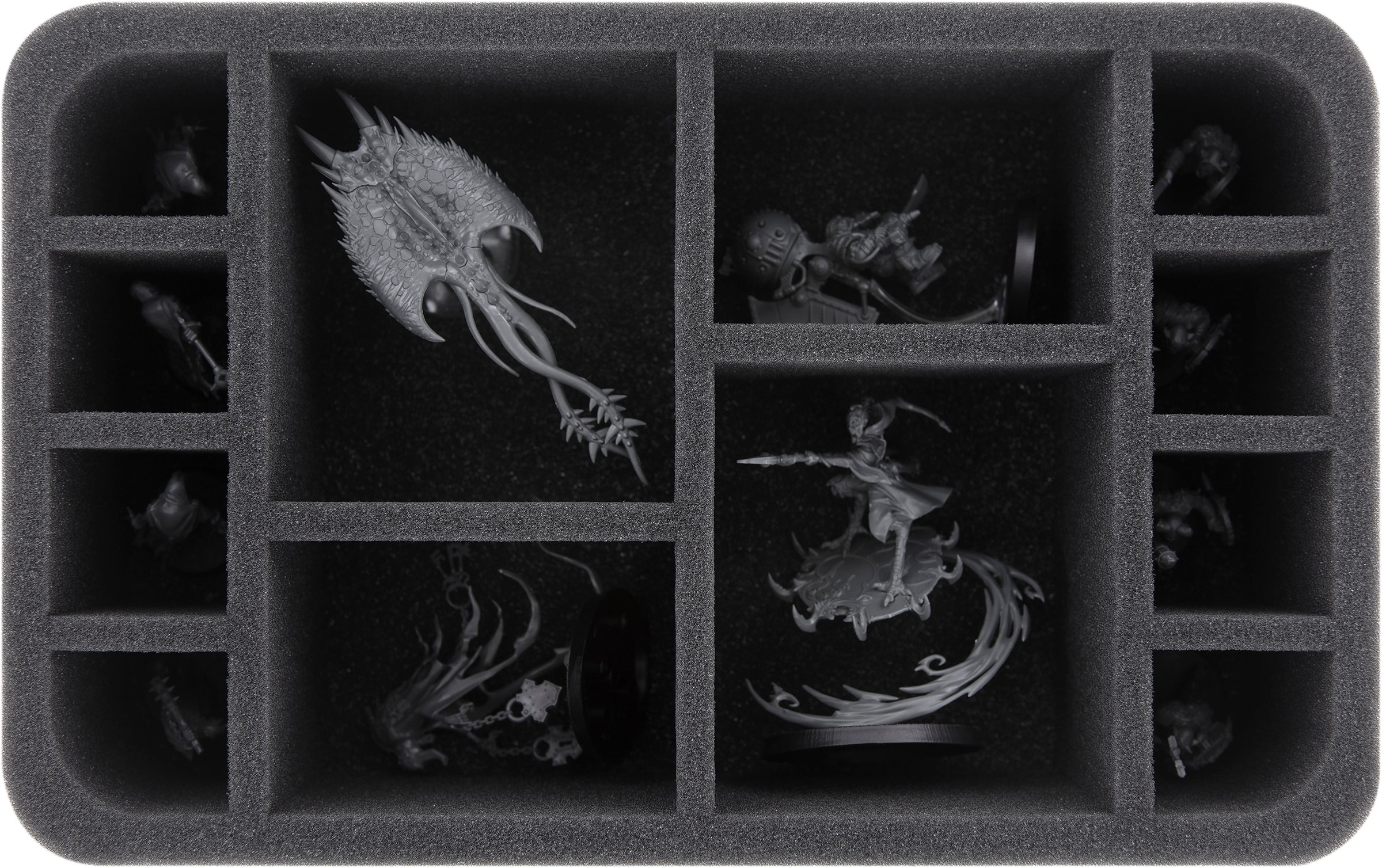 - 1 Half-Size foam tray with 15 compartments for Blue Scribe, The Changeling, Blue Horrors, Brimstone Horrors and miniatures with similar dimensions (HS075A035)