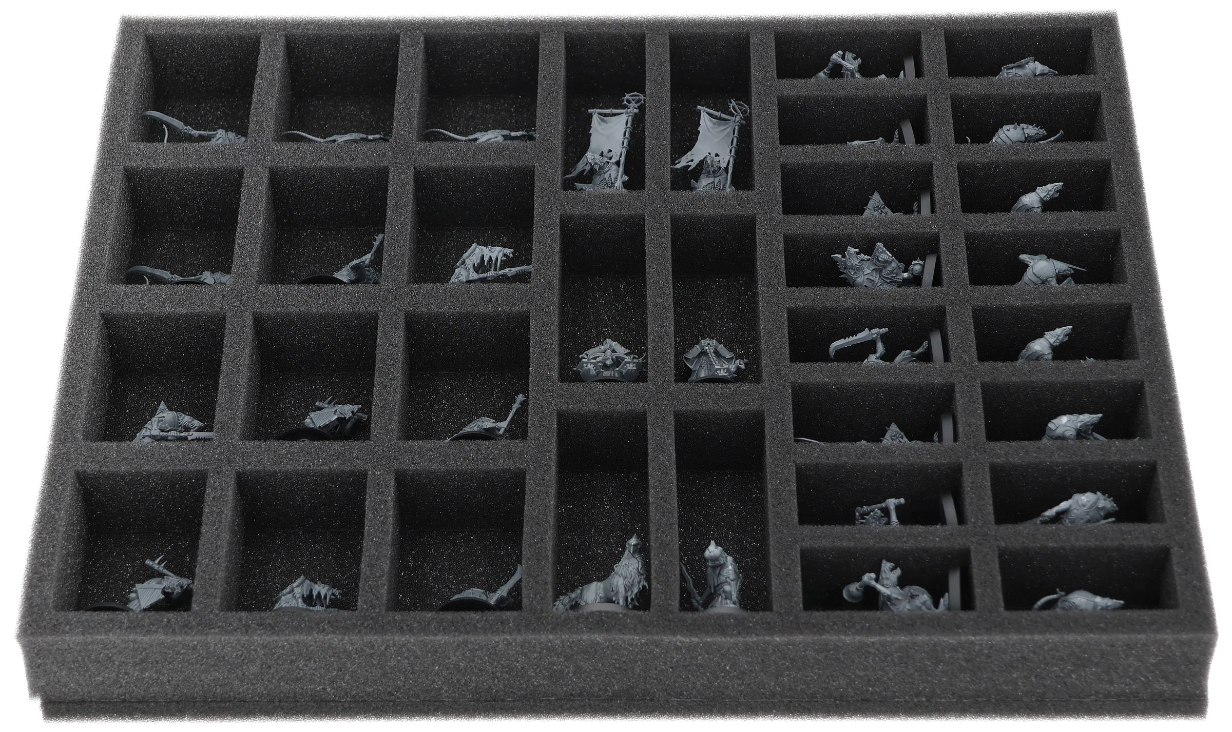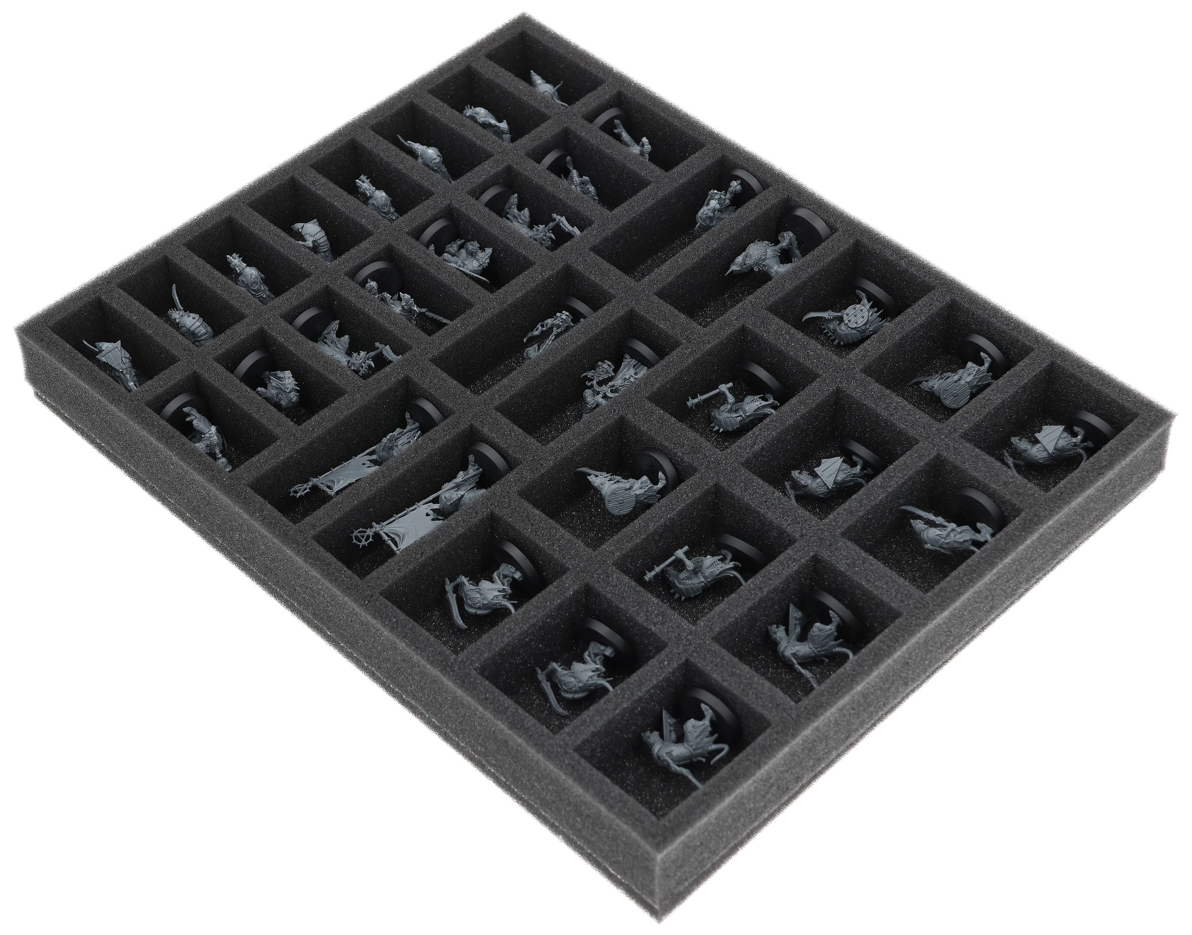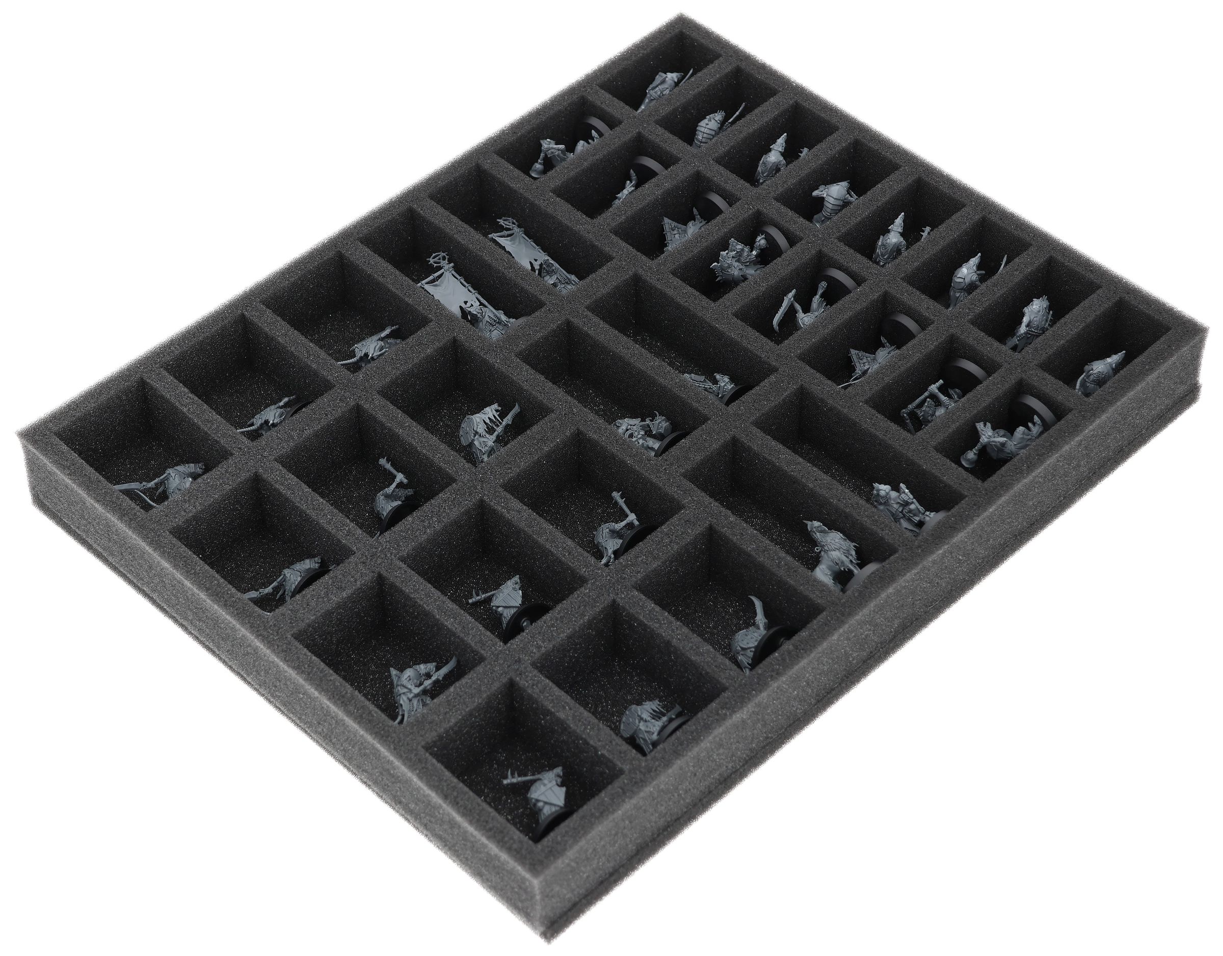On this Feldherr foam tray you have space for up to 34 miniatures of your army. The insert is especially suitable for storing the Clanrats and similar sized models.