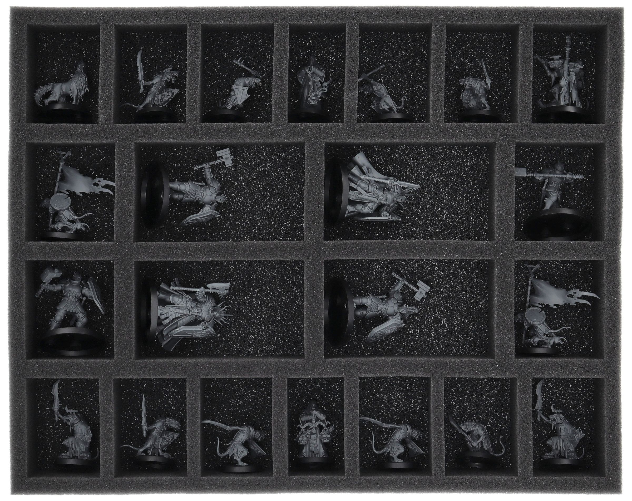 On this Feldherr foam tray you have space for up to 22 miniatures of your army. The insert is especially suitable for storing the Clanrats and similar sized models.