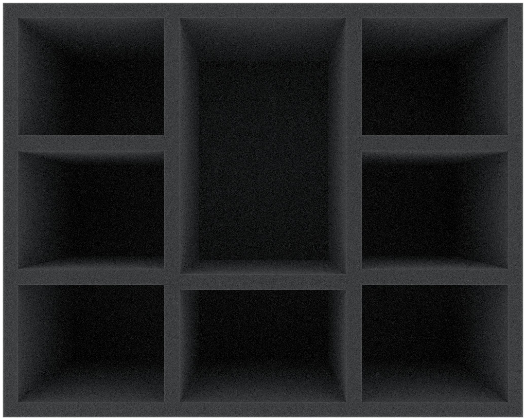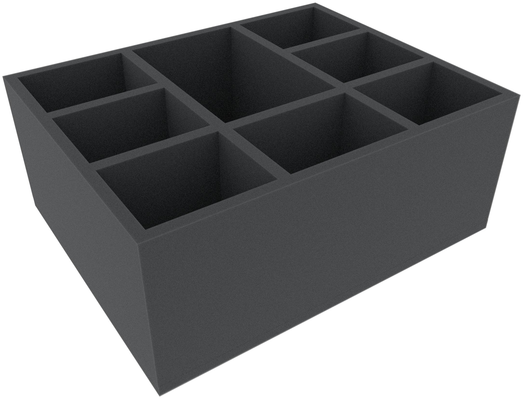 The Full-Size foam tray has the dimensions: 345 mm x 275 mm x 140 mm total height (130 mm usable height + 10 mm foam base).