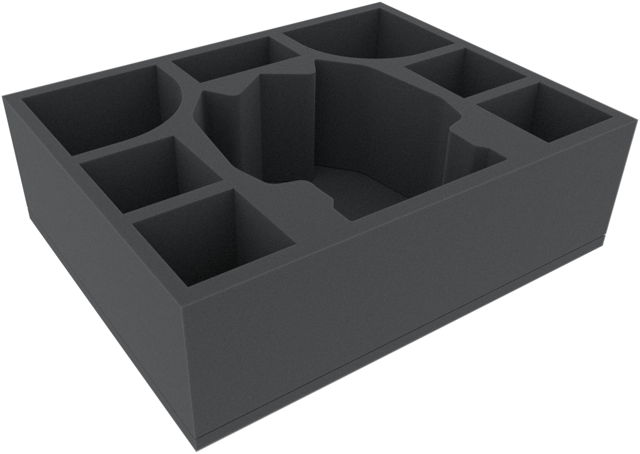 The Full-Size foam tray has the dimensions: 345 mm x 275 mm x 105 mm total height (95 mm usable height + 10 mm foam base).
