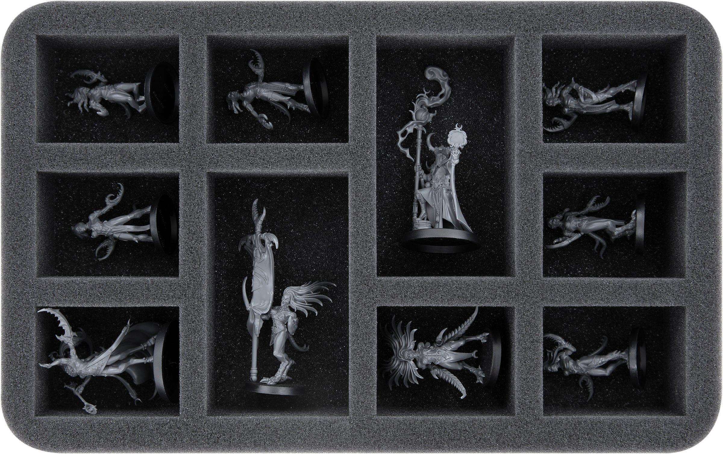 This 45 mm high foam tray is divided into 10 compartments. It is particularly suitable for Shardspeaker of Slaanesh, Daemonettes of Slaanesh, Symbaresh Twinsouls and similar sized miniatures.