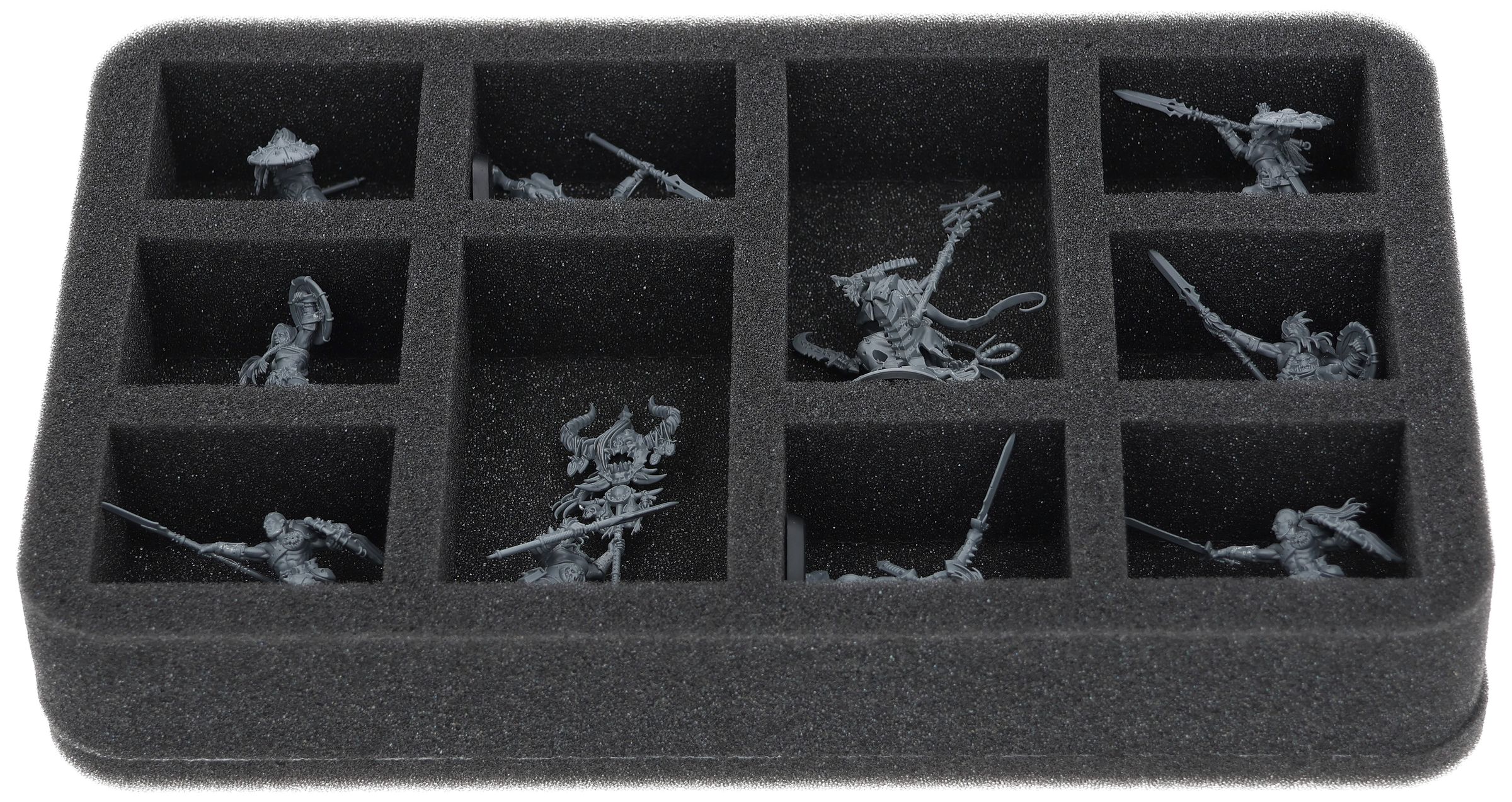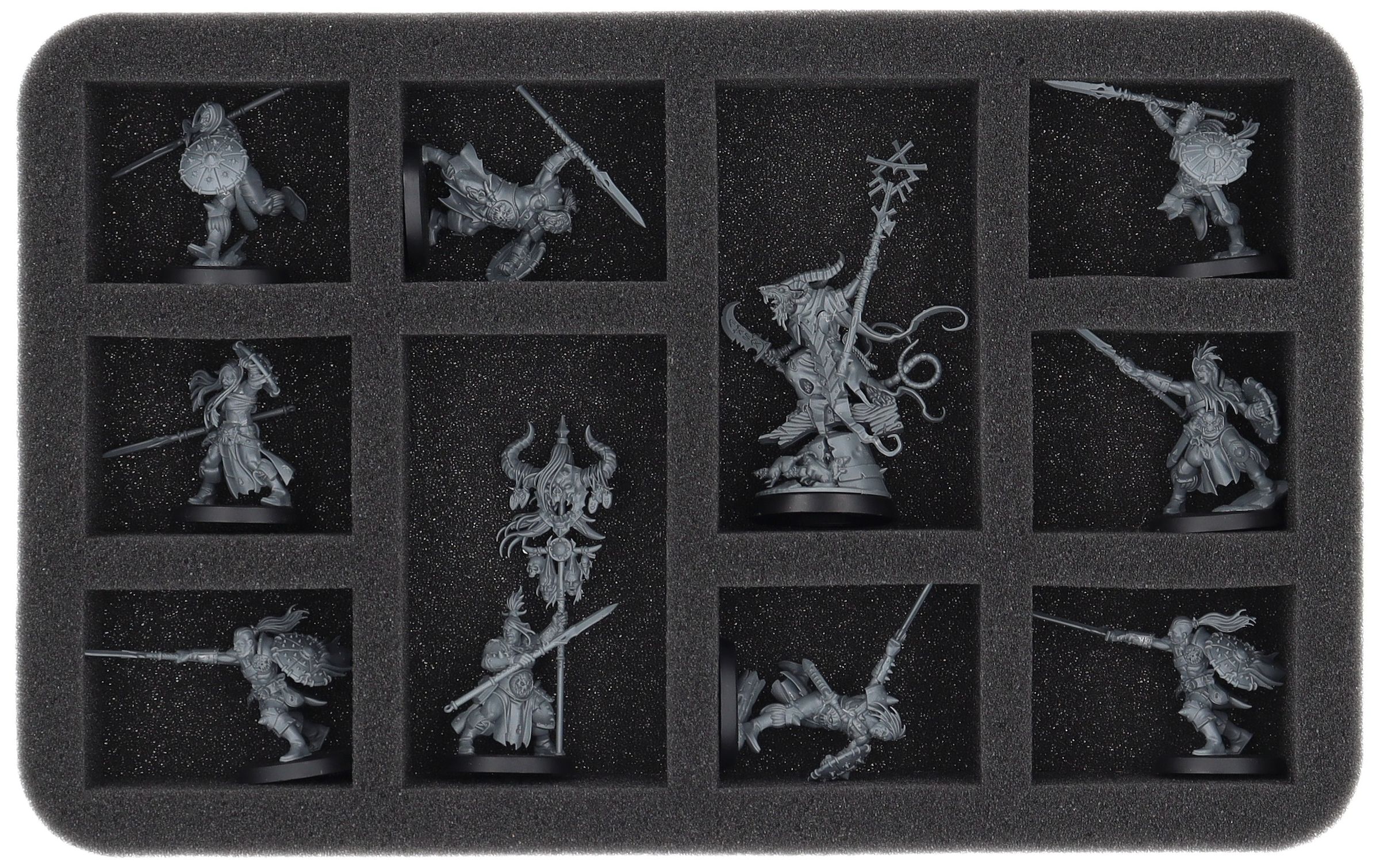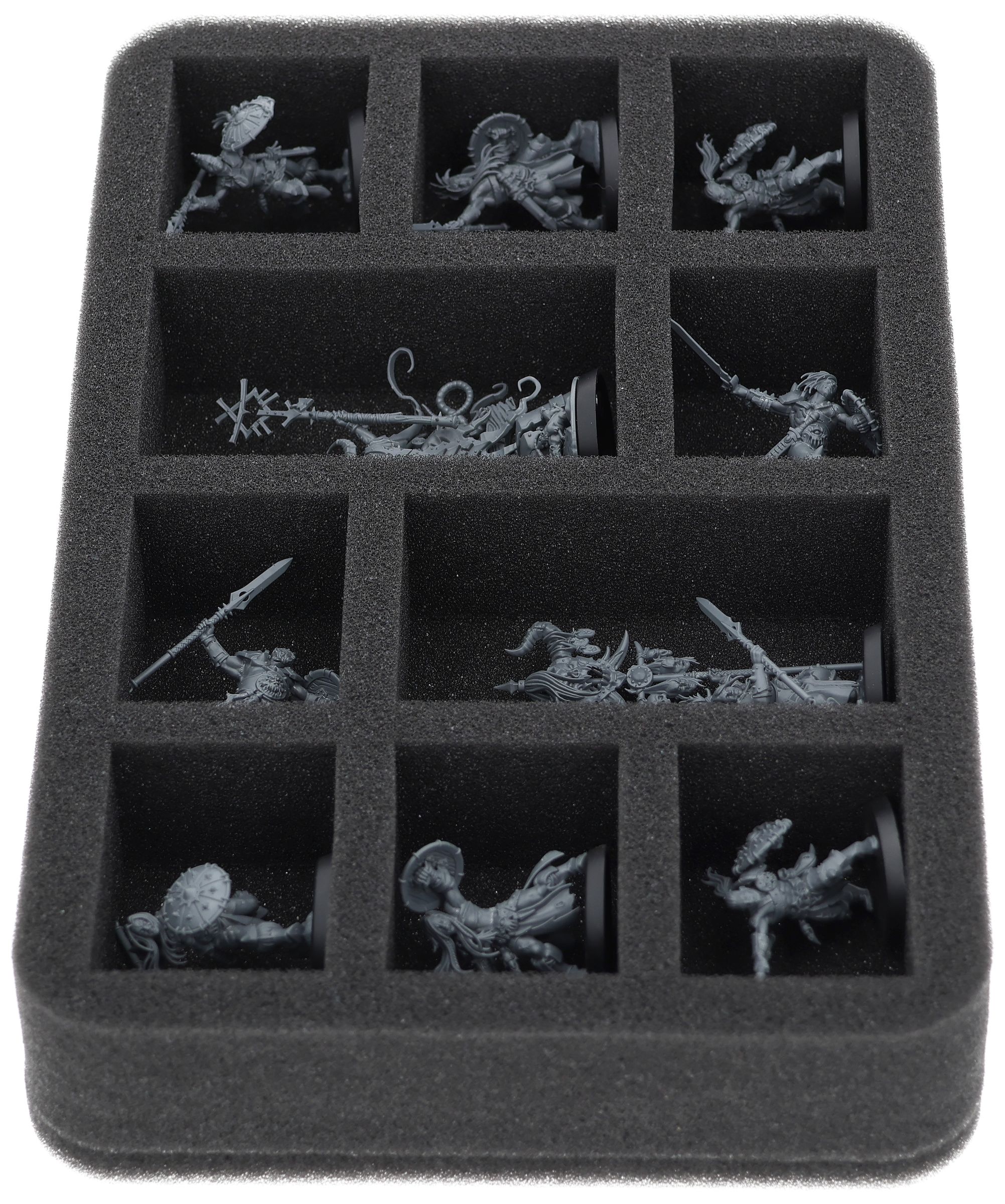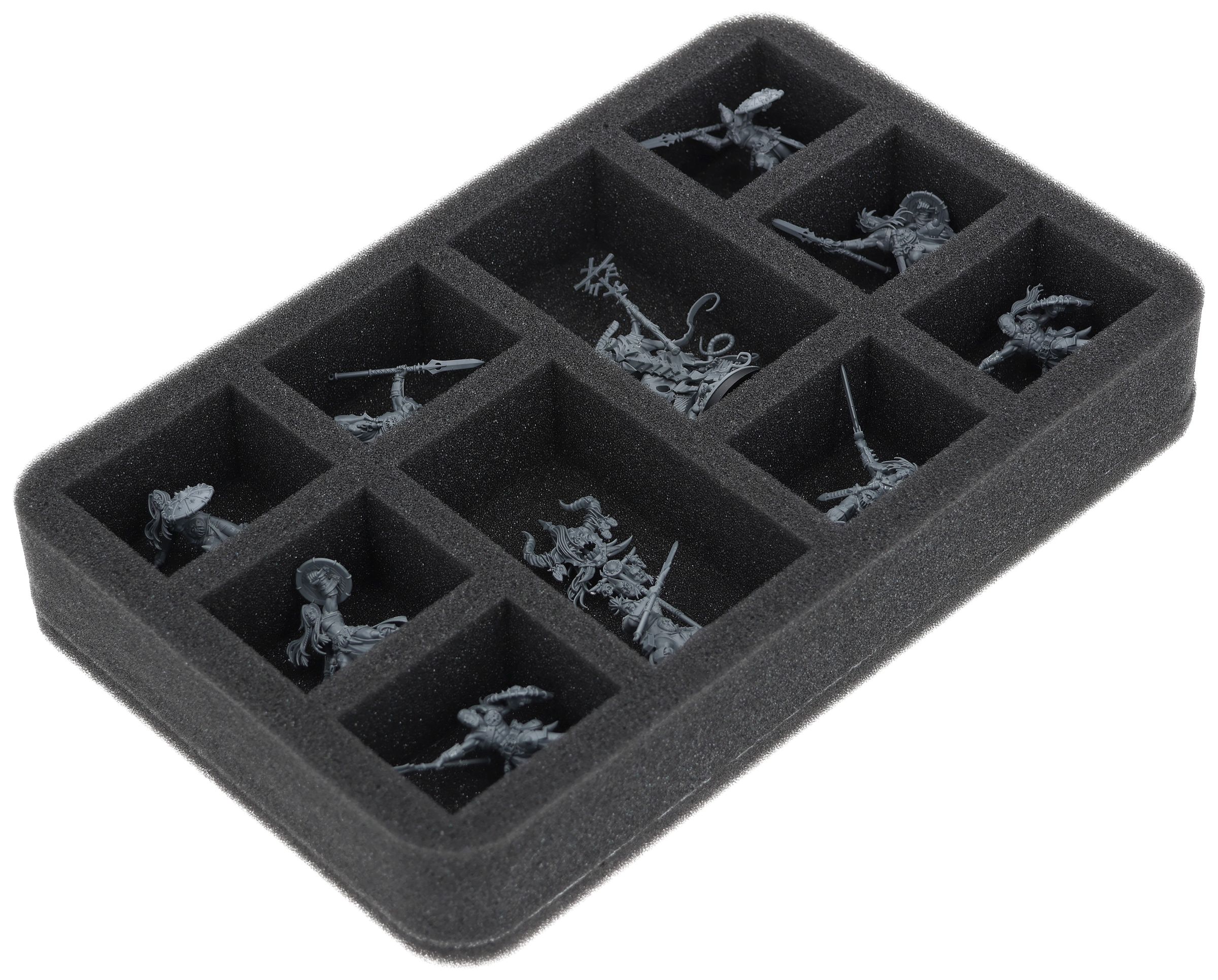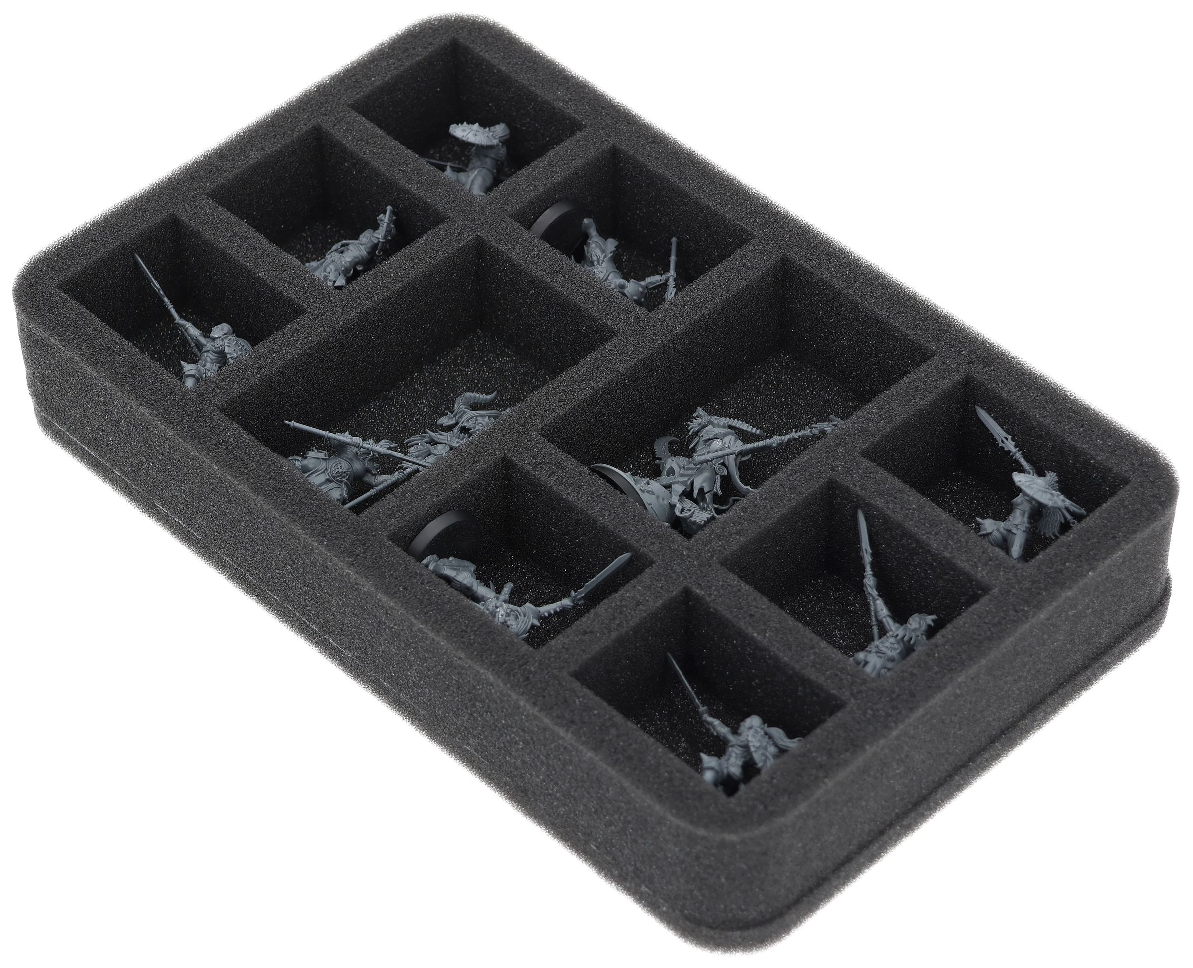 Up to 10 Chaos warriors find a safe place in this Half-Size foam tray. The insert is especially suitable for storing models like Darkoath Marauders or models with similar dimensions.