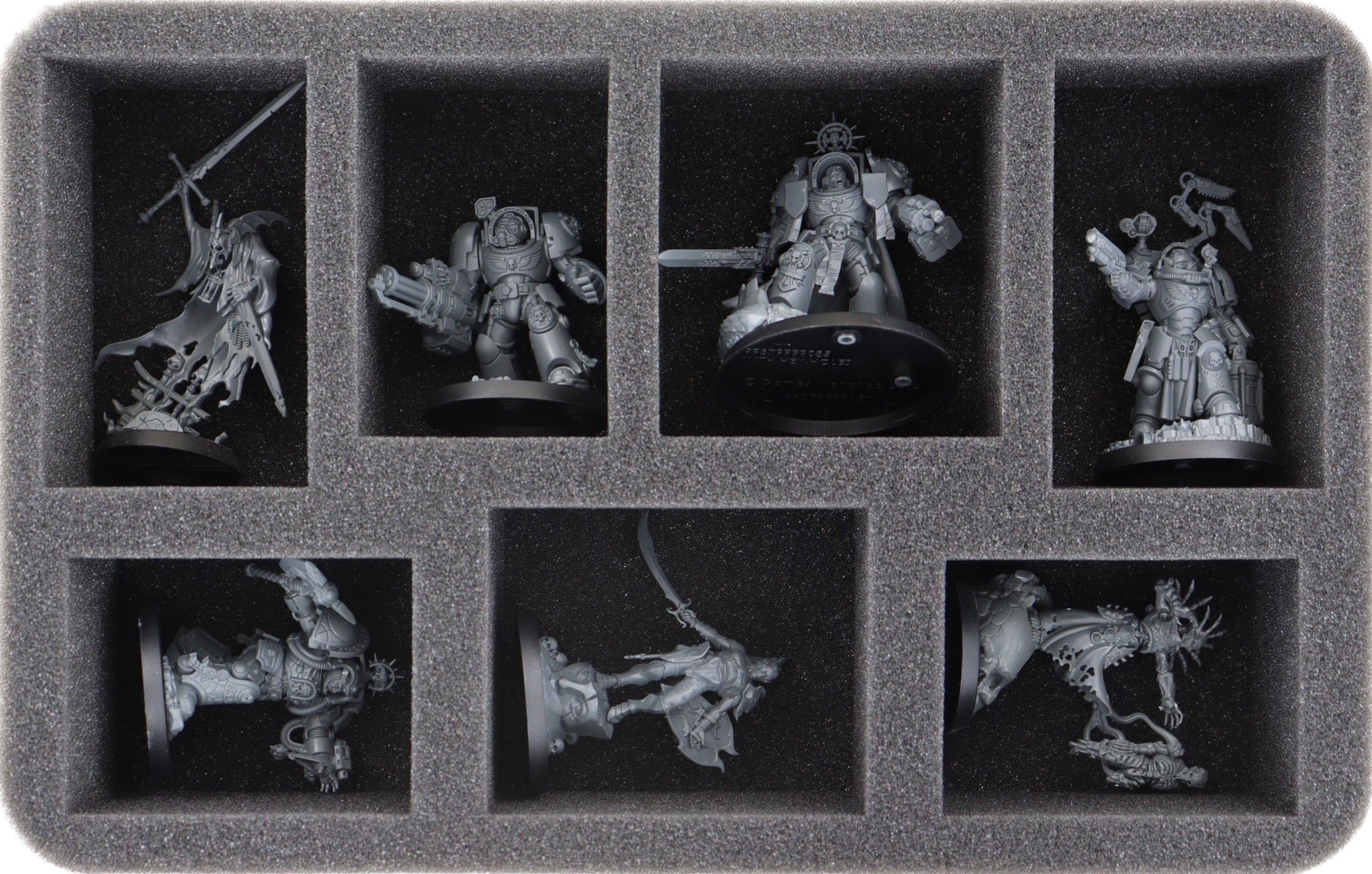 This Feldherr foam tray provides space for up to 7 miniatures from your army. The insert is particularly suitable for storing bulky Character models like the Lord of Hubris, Lord of Pain, Infernal Enrapturess, and models with similar dimensions.