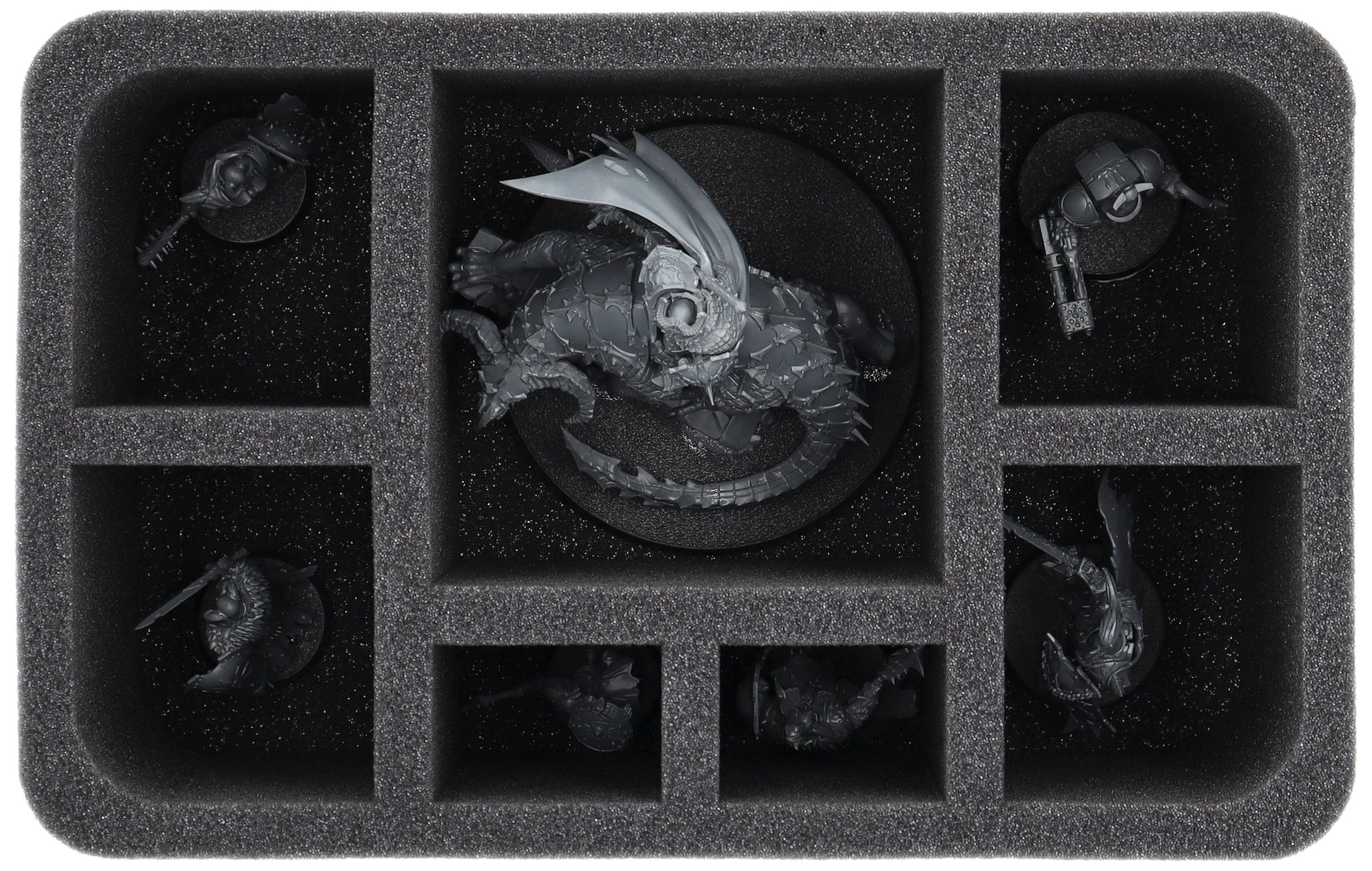 On this Feldherr foam tray you have space for up to 7 miniatures of your army. The insert is especially suitable for storing the Abraxia, Spear of the Everchosen and similar sized models.