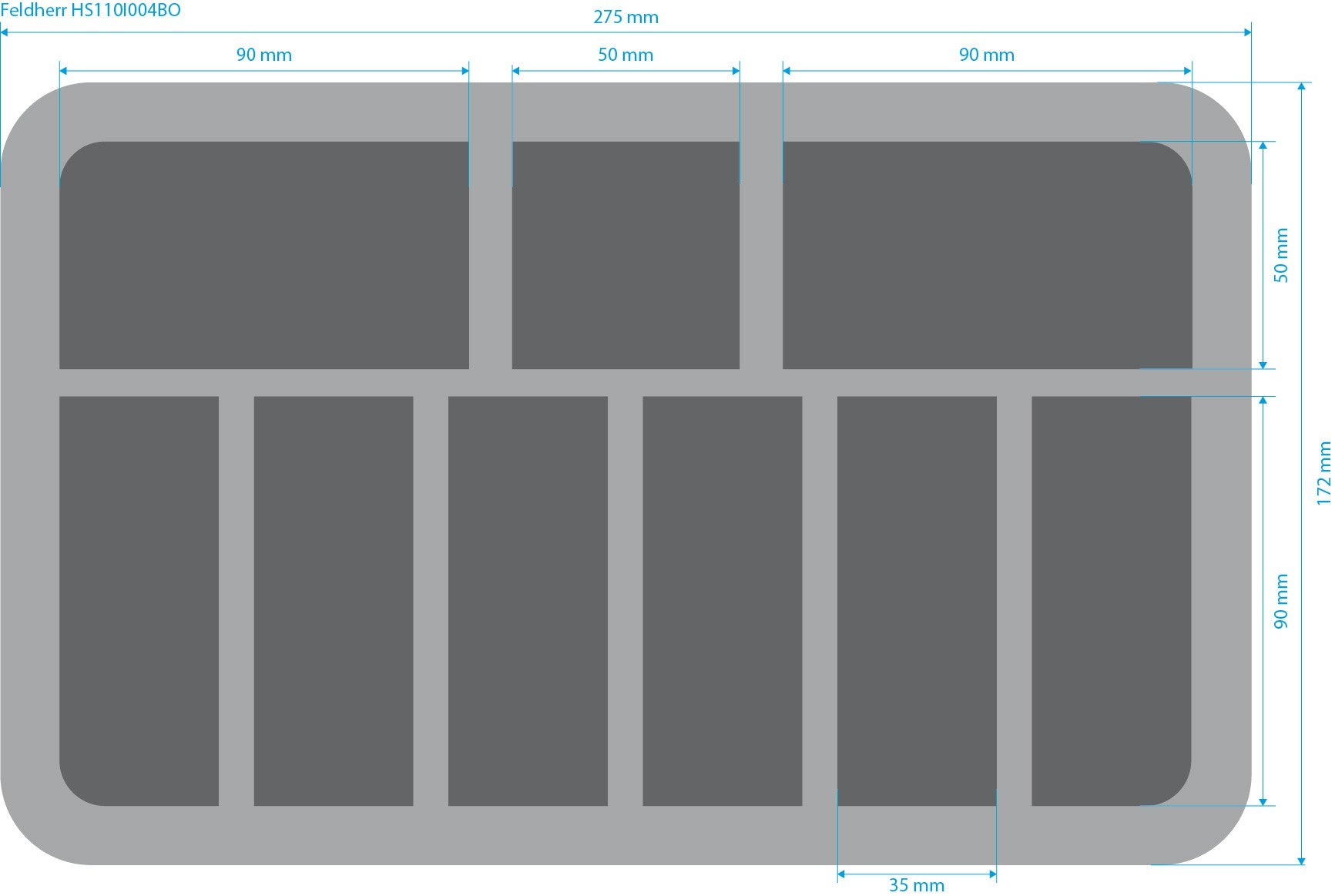 - 6 compartimentos: 90 mm de largo x 35 mm de ancho x 110 mm de profundidad