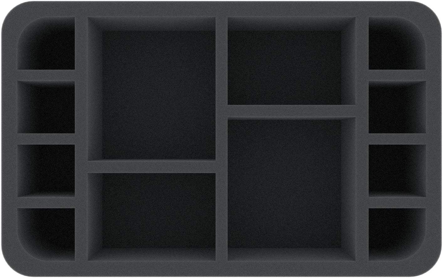 Esta bandeja de espuma Half-Size está dividida en 12 compartimentos de diferentes tamaños, que son adecuados para héroes, monstruos y guerreros de los juegos de mesa clásicos o sistemas de sobremesa.