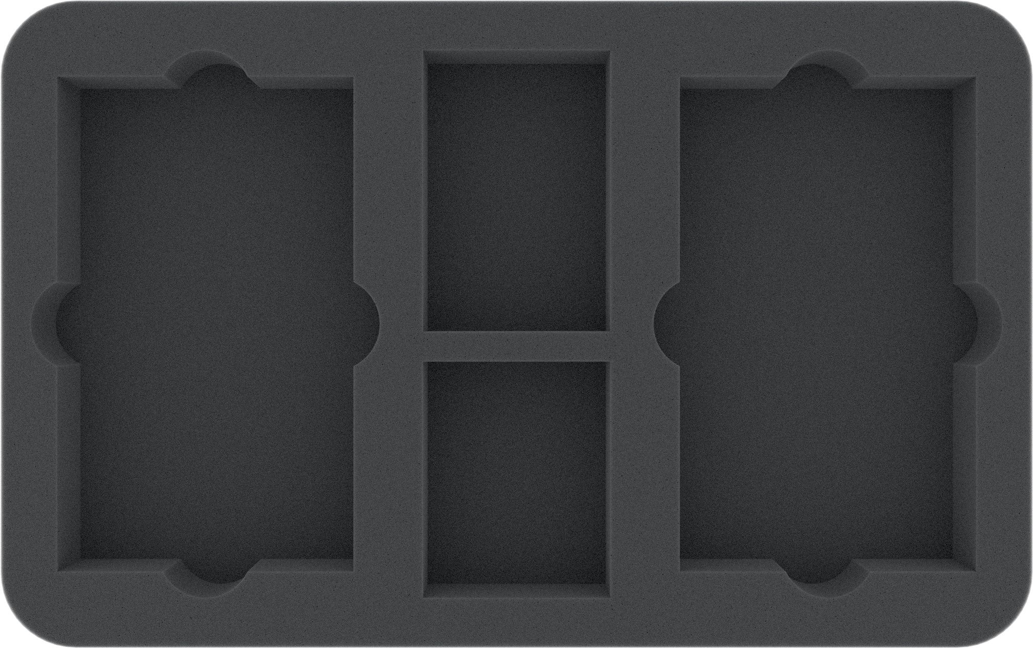 Esta pieza de espuma Half-Size tiene 4 compartimentos de diferentes tamaños. Es especialmente adecuado para el almacenamiento ordenado de material de juego como tarjetas, marcadores o fichas.