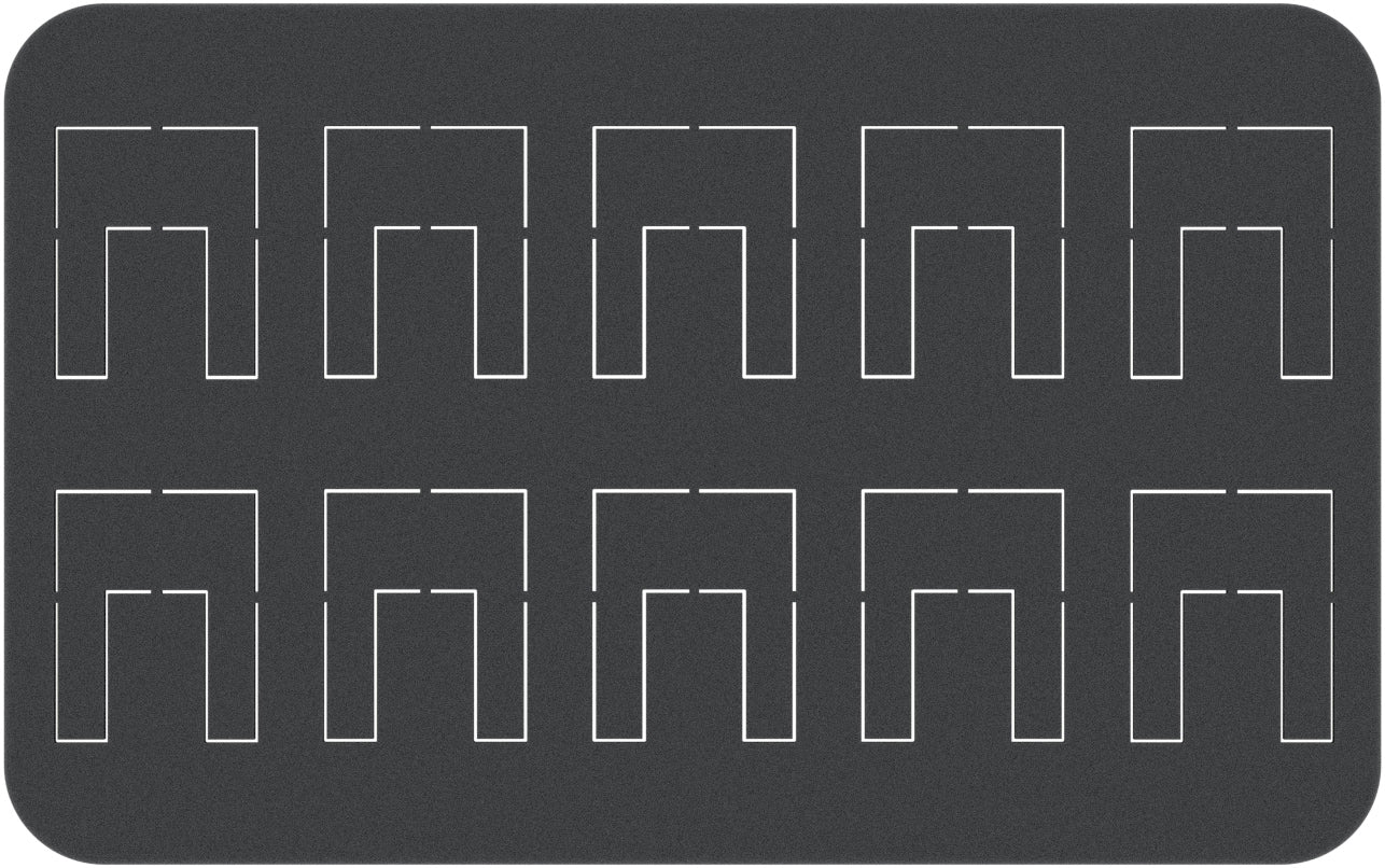 A 20 mm thick foam mat with 10 punch-outs
