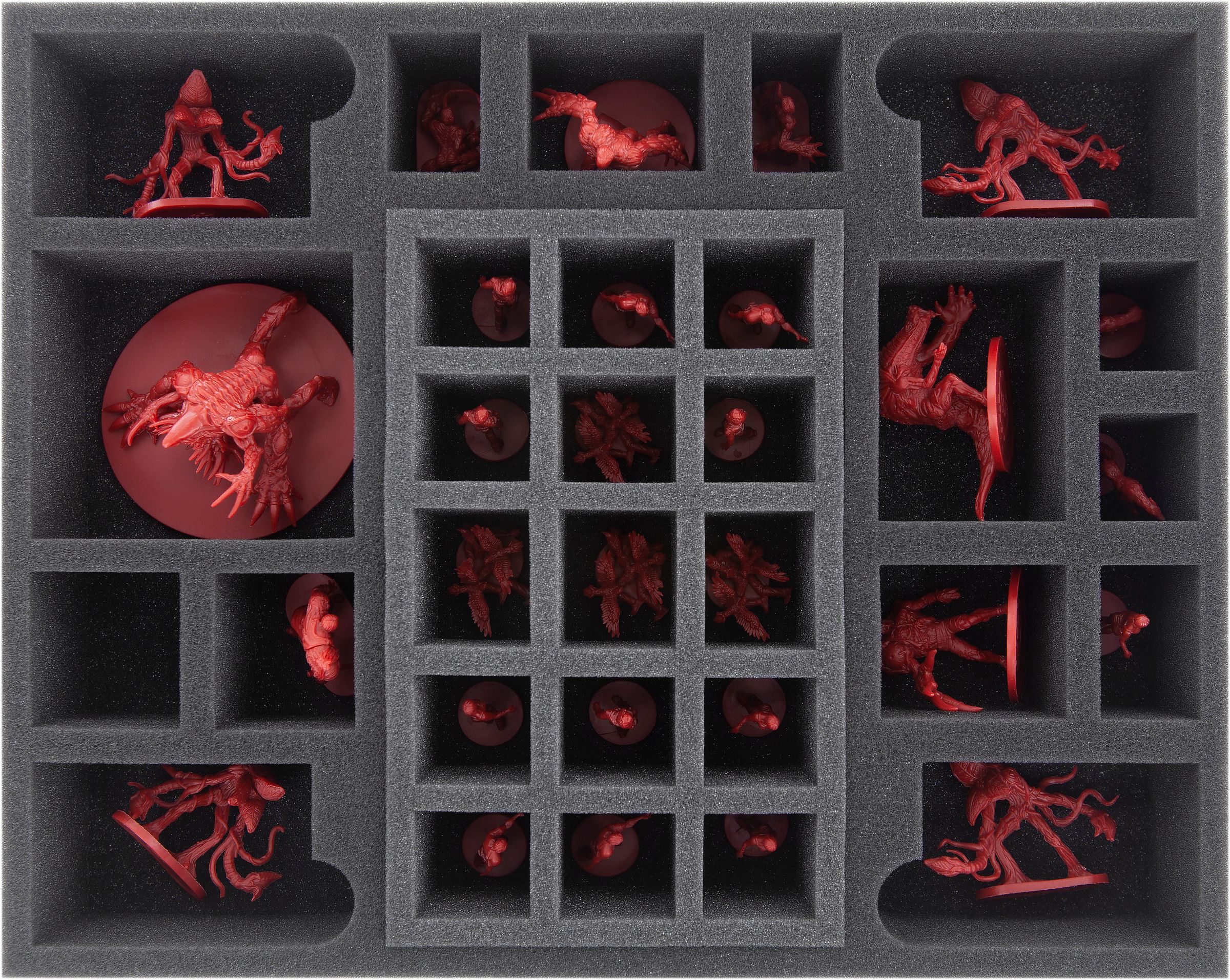 For neat storage of the miniatures, the set contains a total of four foam trays. On two Full-Size and four Half-Size inserts, each figure is appointed its own precisely fitting compartment. This prevents them from sliding around and hitting each other during transport. The colors of the painted figures are thus spared scratches or abrasion. The soft foam material optimally protects the fine, sensitive parts, such as claws, weapons or wings, from damage.