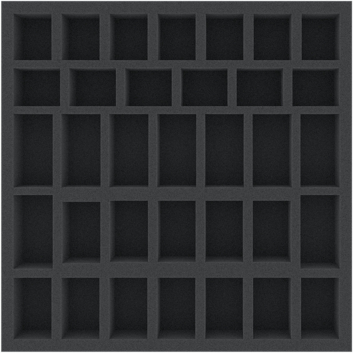 - AFMEDY040BO: 285 mm x 285 mm x 40 mm total height (30 mm usable height + 10 mm foam base).
