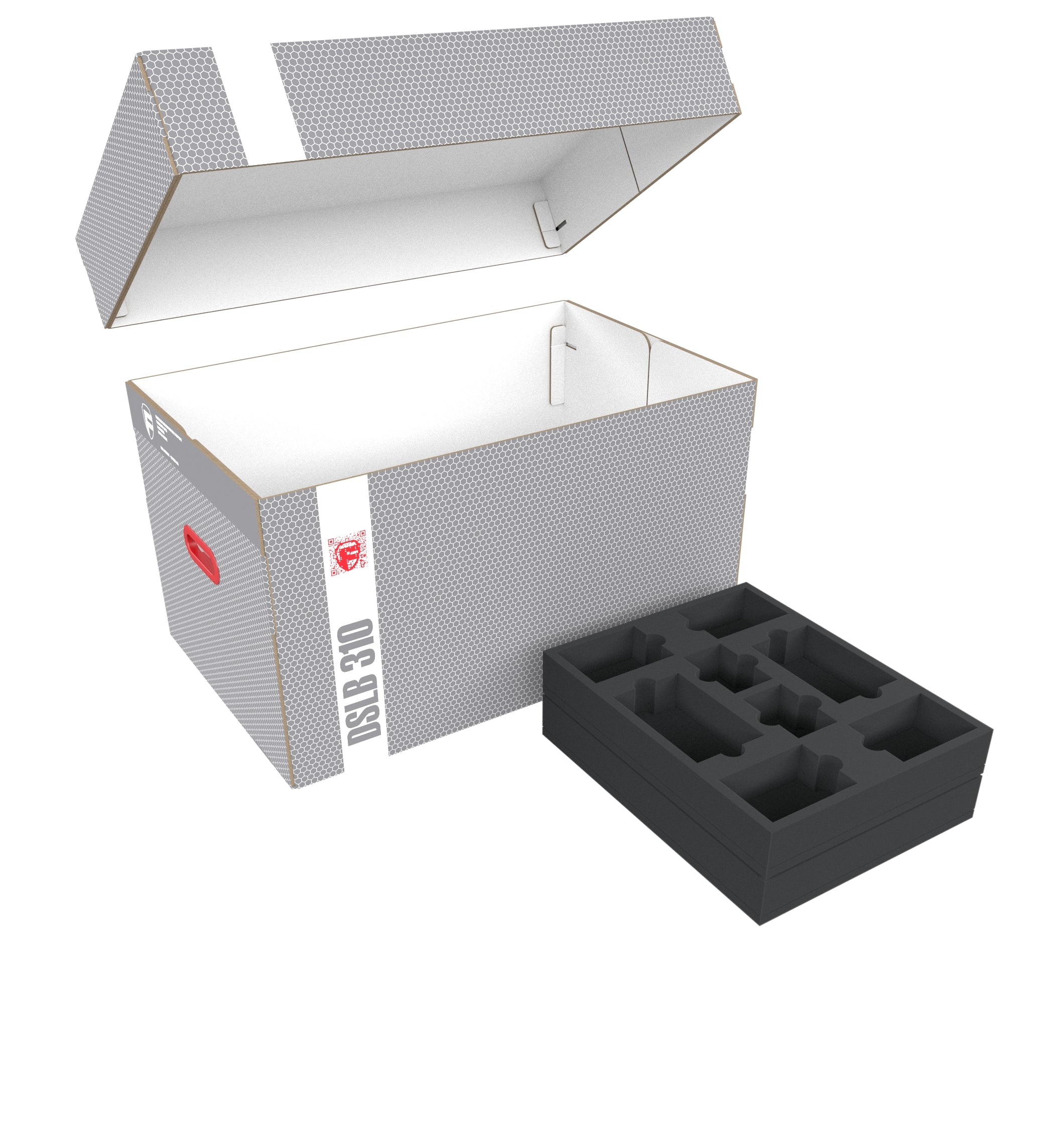 - 1 Half-Size foam tray with 6 compartments for larger miniatures (HSMECO100BO)