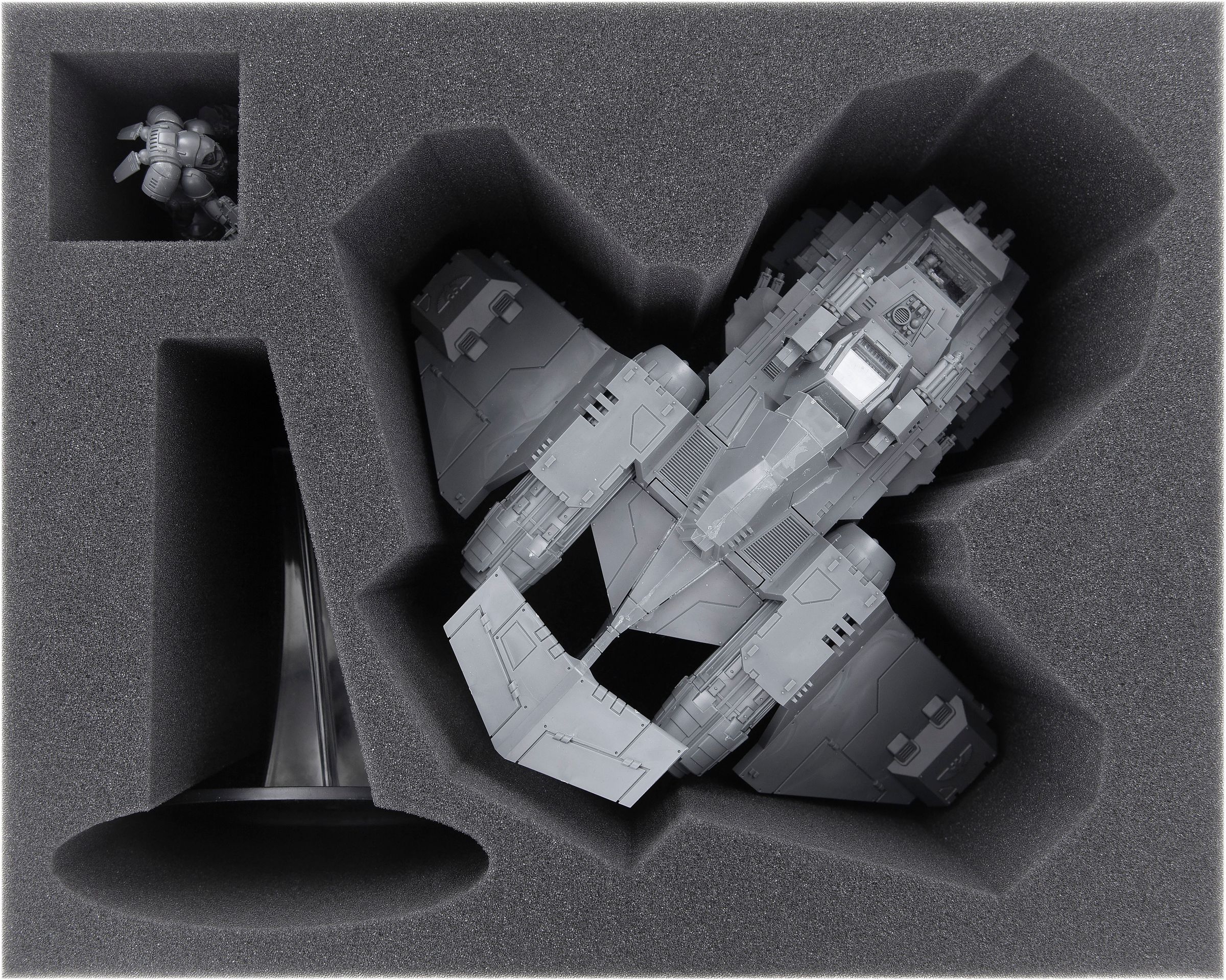 To make sure that the Stormraven arrives at the tabletop ready for flight and fight, we offer this custom-designed Feldherr foam insert to protect your miniature.