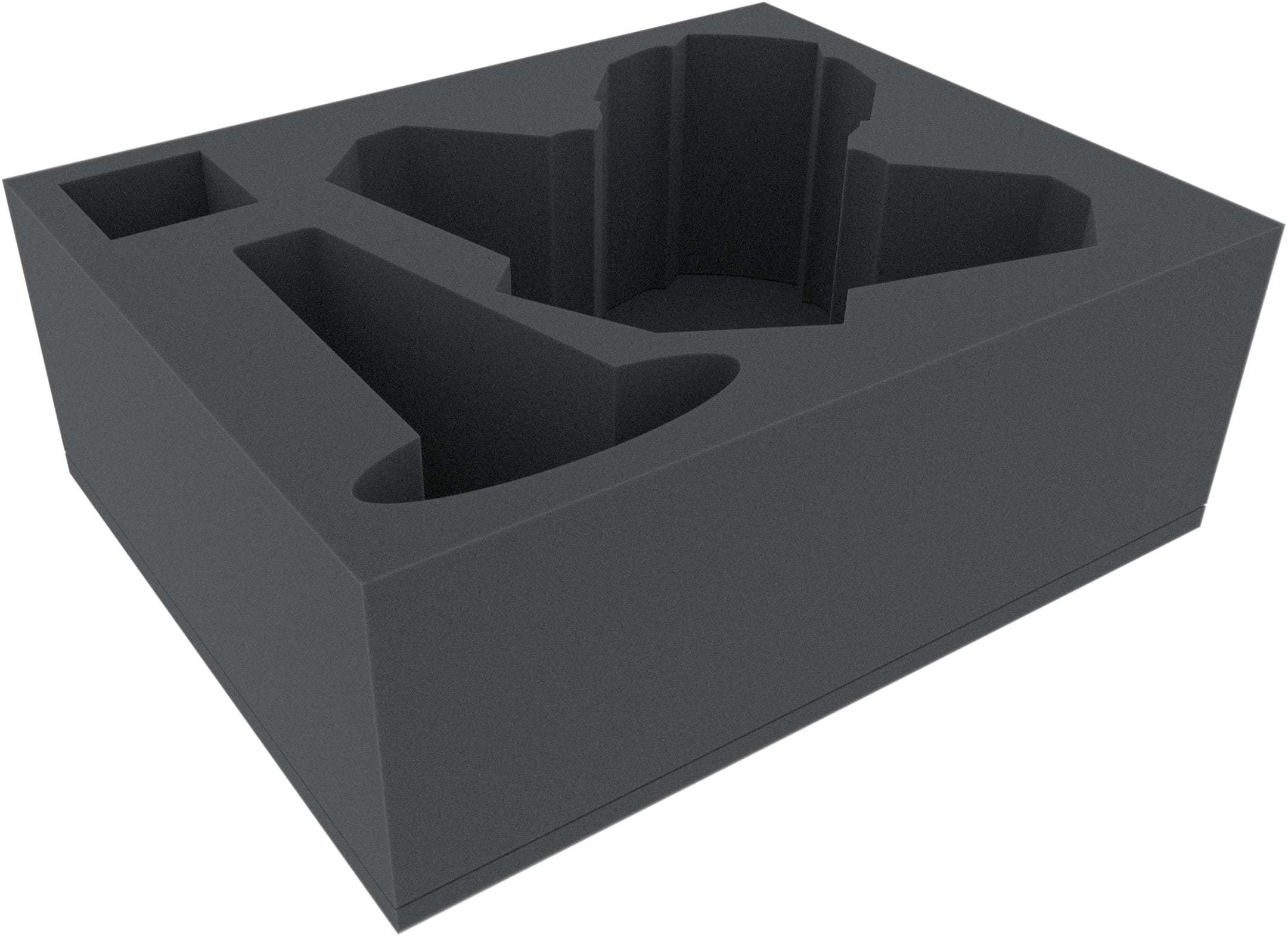 The Full-Size foam tray has the dimensions: 345 mm x 275 mm x 125 mm total height (115 mm usable height + 10 mm foam base).