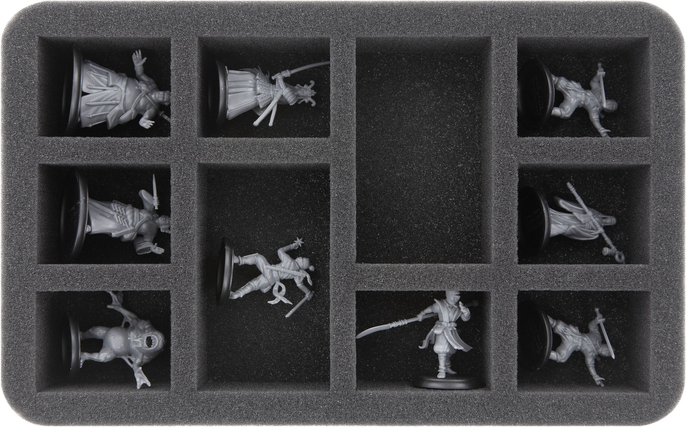 This Feldherr foam tray has 10 compartments for the safe and orderly storage of small and medium-sized "Shadows of Brimstone" miniatures. It is ideally suited for models on 32 mm bases. The fine-pored foam provides reliable protection against damage – delicate parts stay intact, the color of painted models remains unharmed.
