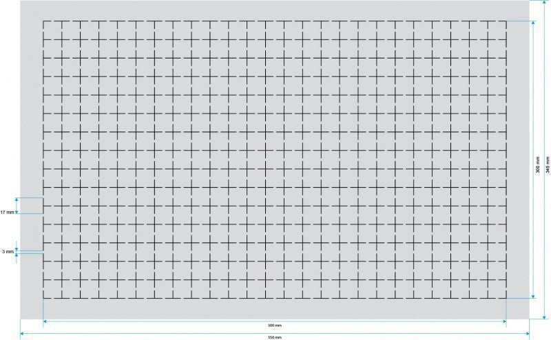 - Pre-punched grid with 20 mm x 20 mm size.