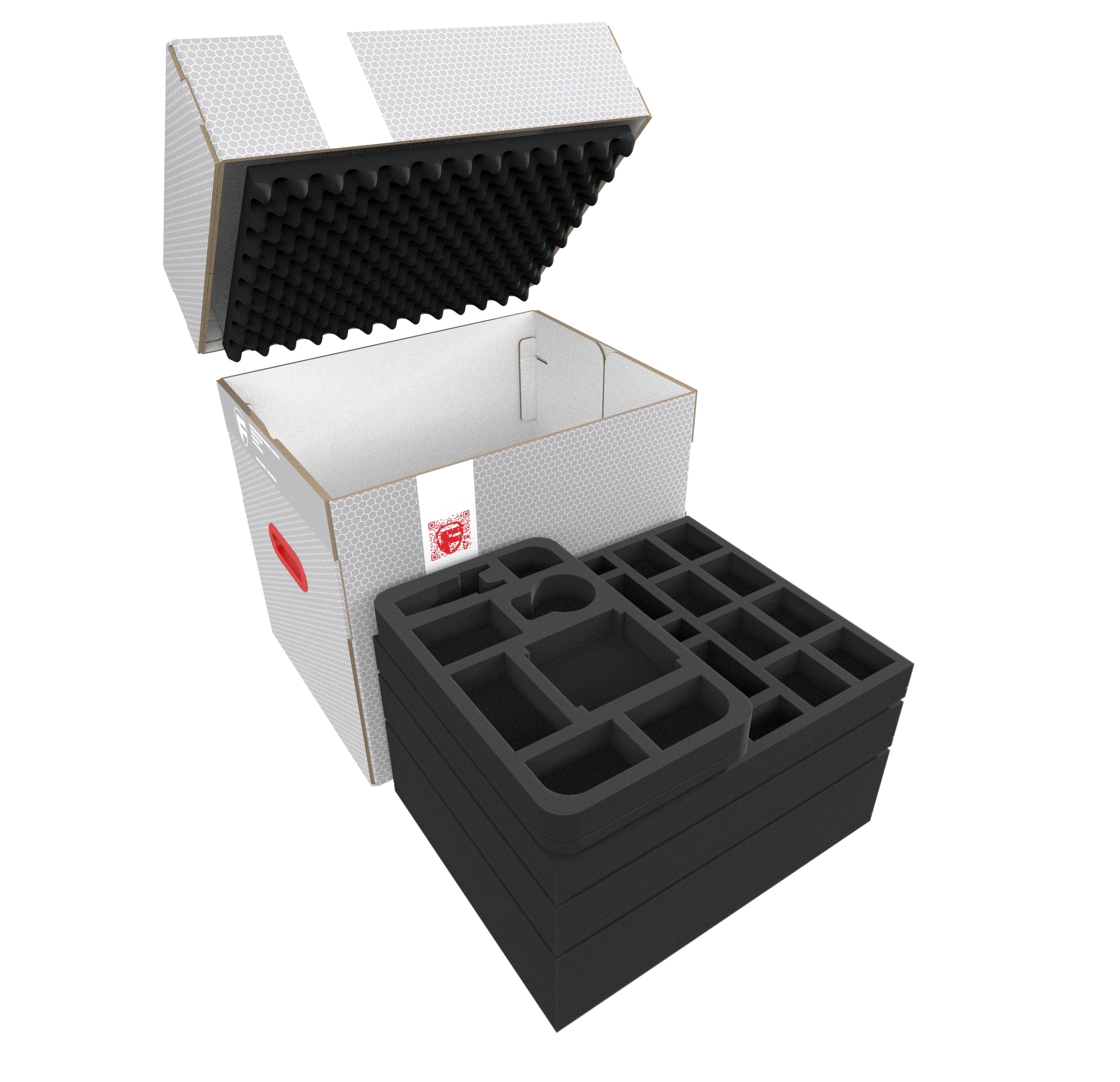 The large Feldherr cardboard storage box for storing and transporting your ships. The box is filled with a total of seven tailor-made foam inserts for your Rebel fleet. In addition, the package contains two inserts for tokens, bases and other accessories. This one is compatible with the 2nd Edition.