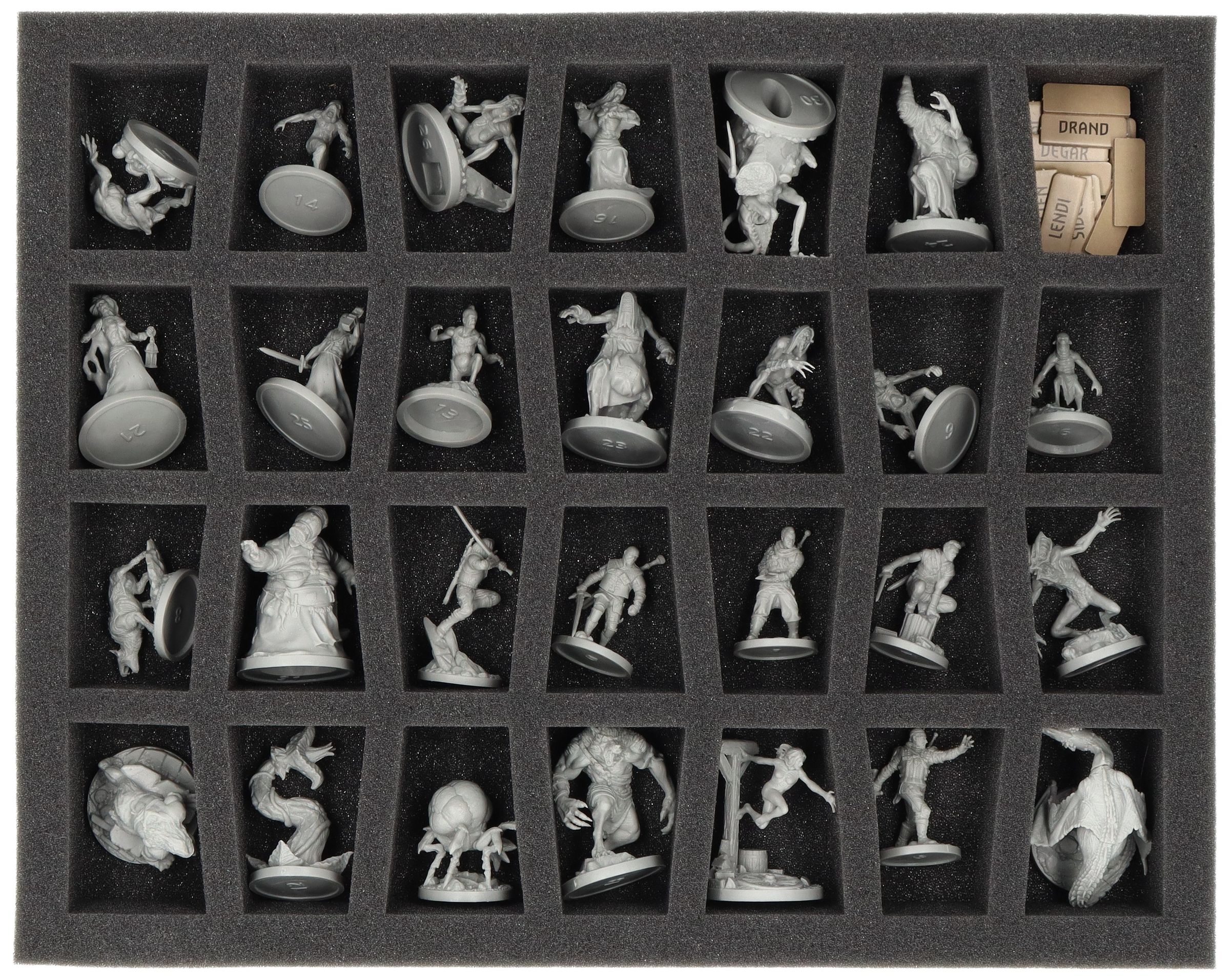 - 1 Full-Size foam tray with 28 compartments for miniatures (FS050C4BO)