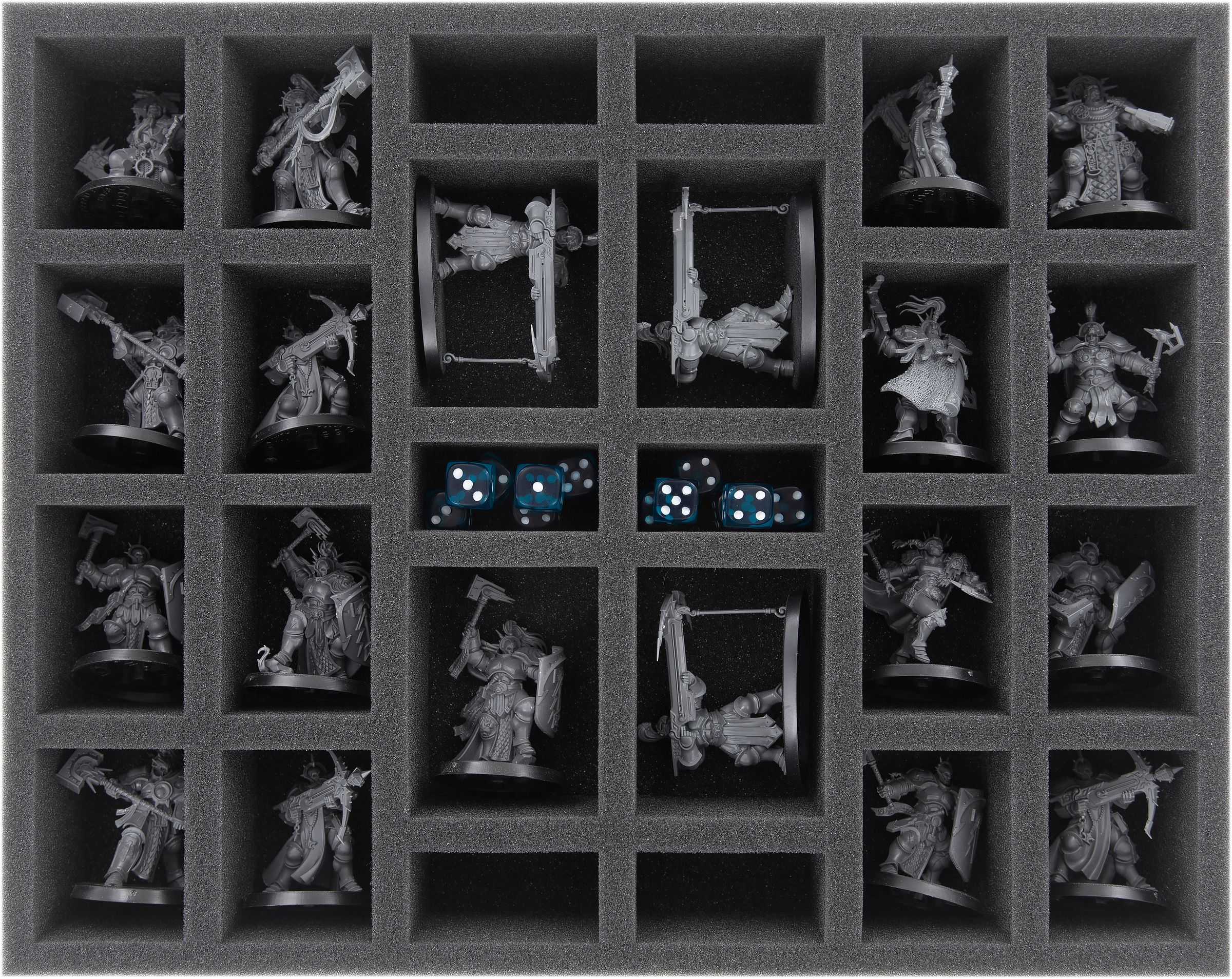 - 1 Full-Size foam tray with 22 compartments for bulky standard infantry like Sisters Repentia, Arco-flagellants, Battle Sisters and models with similar dimensions (FS050A049)