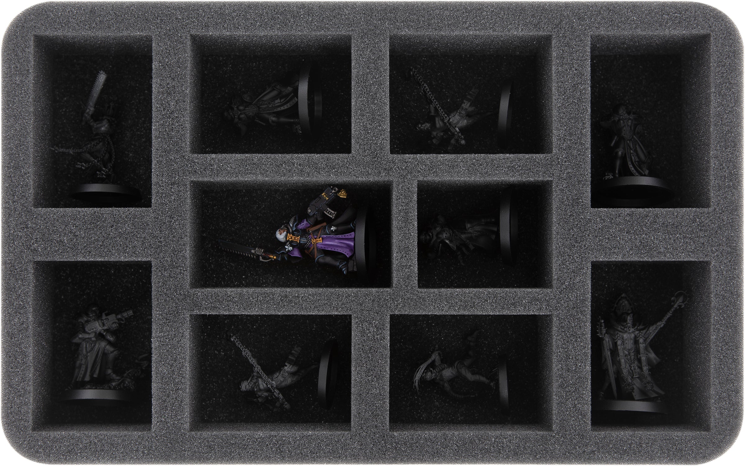 - 1 Half-Size foam tray with 10 compartments for sprawling standard infantry like Sisters Repentia, Arco-flagellants, Battle Sisters and models with similar dimensions (HS050A032)