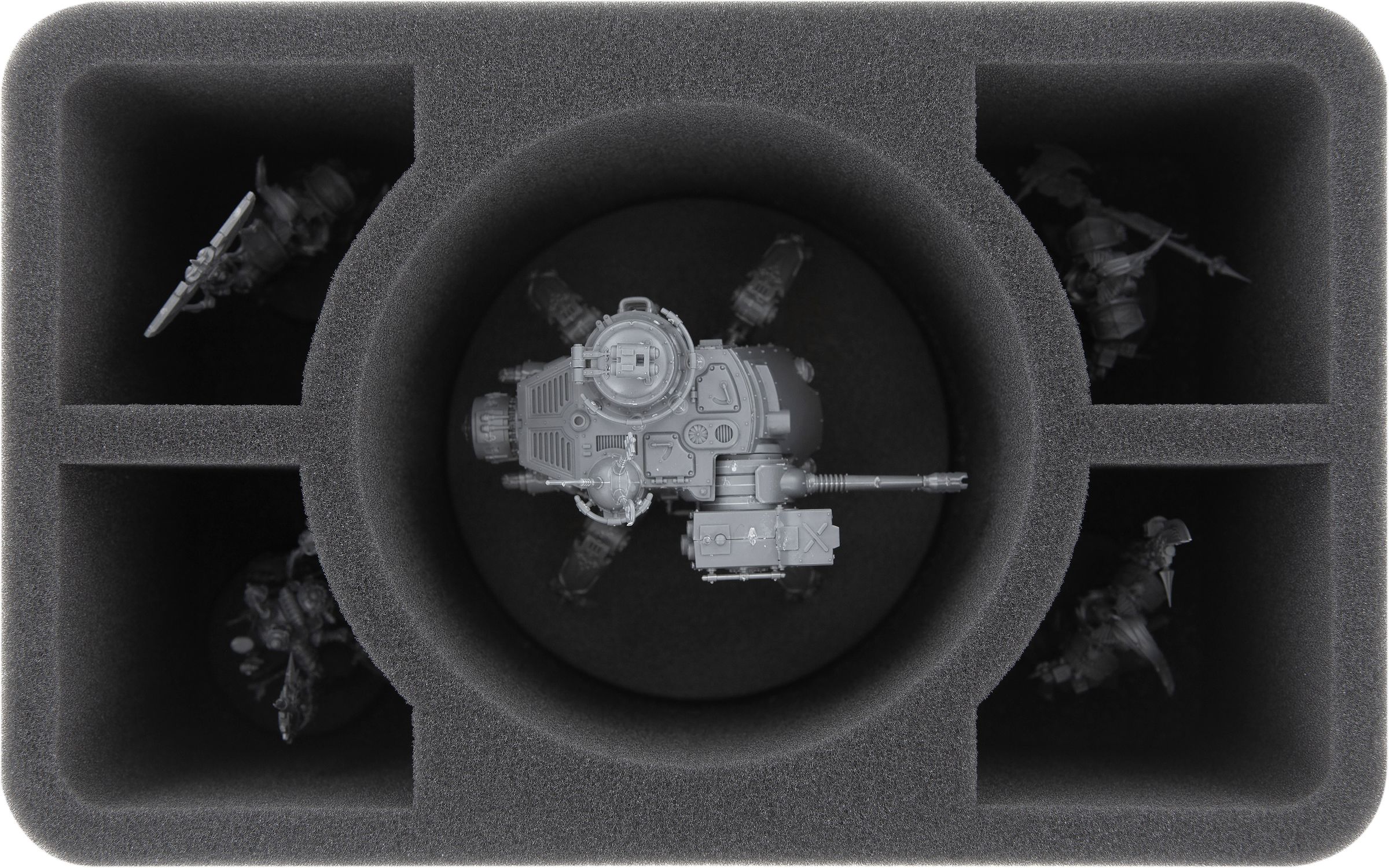 • 1 Half-Size foam tray with a miniature-precisely cut compartment for an Onager Dunecrawler and four compartments for medium-sized models (HS110WH50)