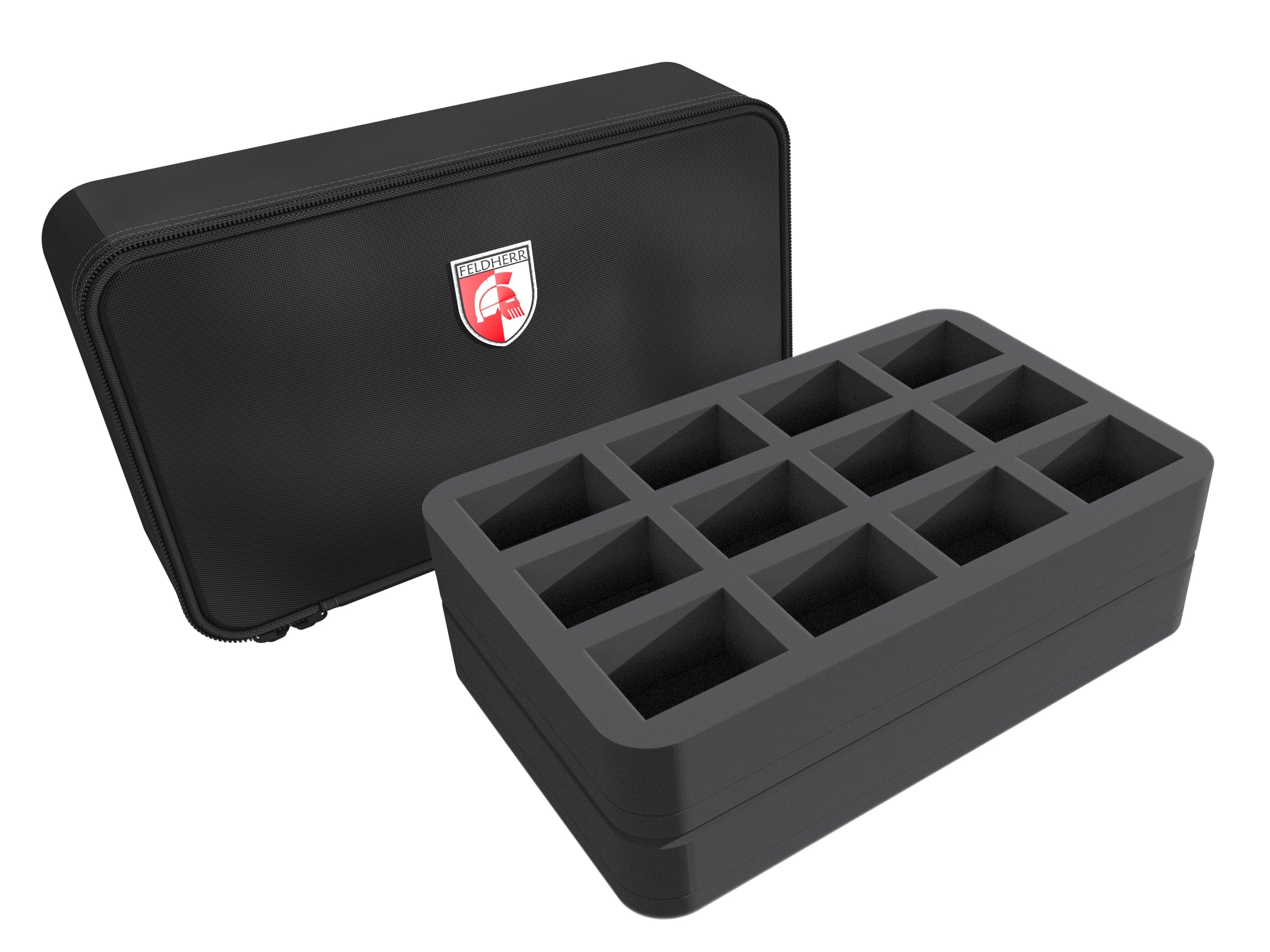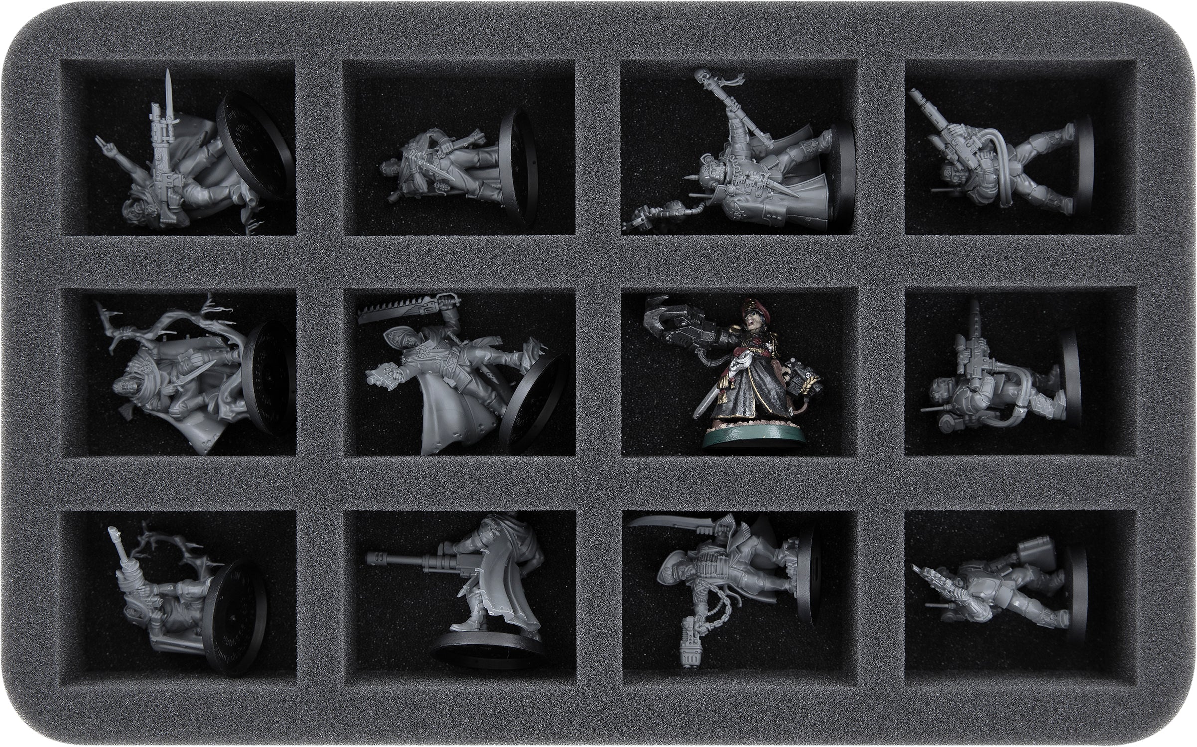 - 1 Half-Size foam tray with 12 compartments for standard infantry like Gaunt’s Ghosts, Cadian Shock Troops, and models with similar dimensions (HS040A032)