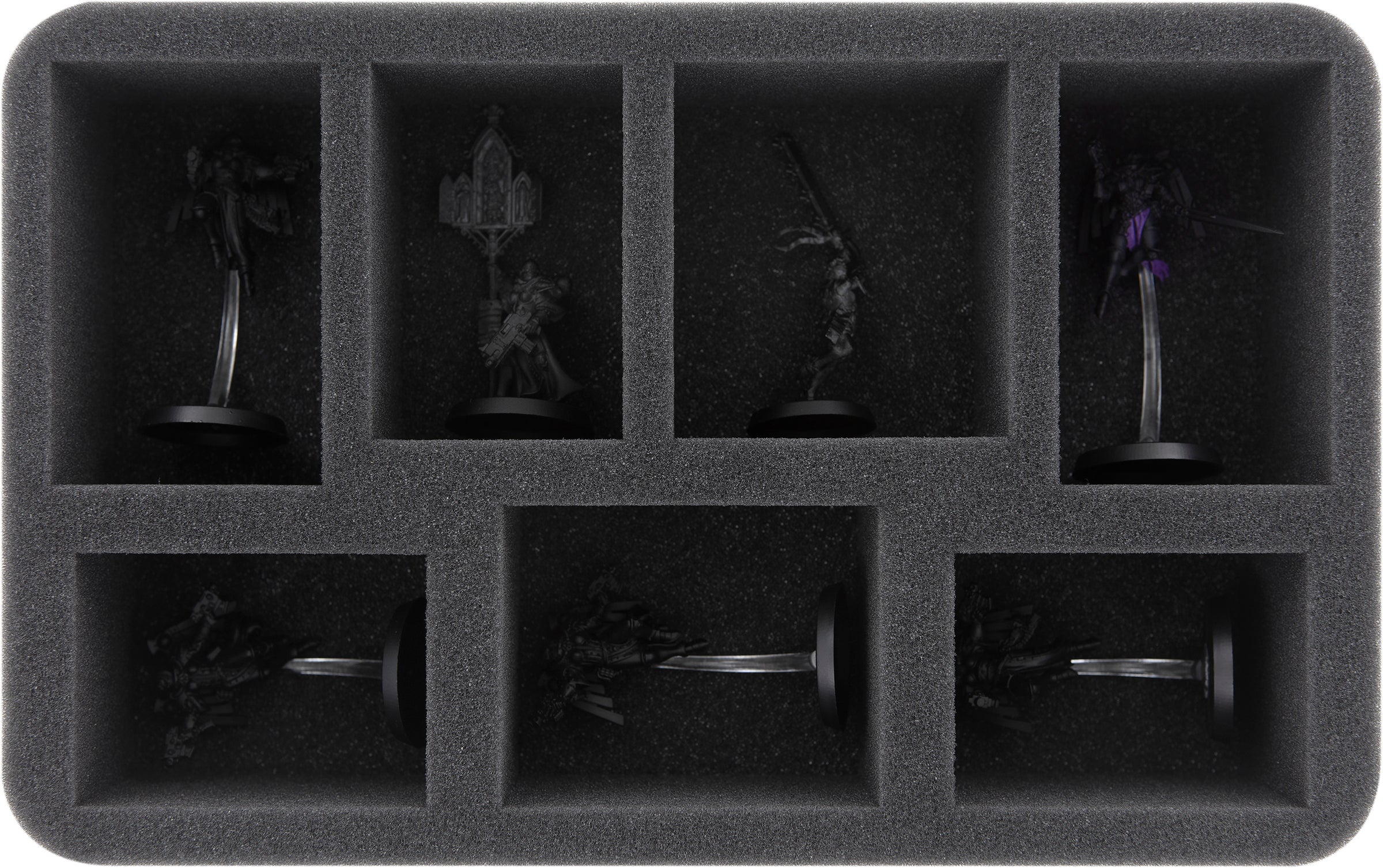 - 1 Half-Size foam tray with 7 compartments for bulky infantry models like Seraphim / Zephyrim, Repentia Superior, Imagifier, Battle Sister with Simulacrum Imperialis and models with similar dimensions (HS060A022)