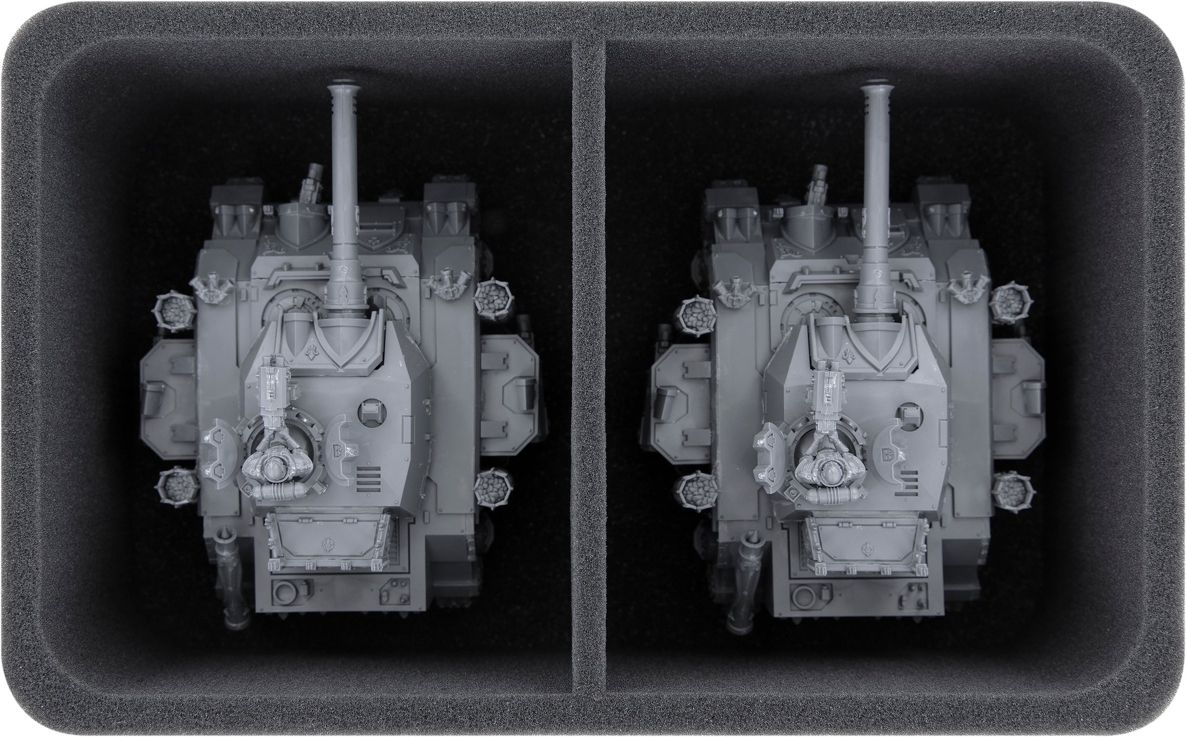 - 1 Half-Size foam tray with 2 large compartments for Paragon Warsuits + 16 small compartments for 1x standard infantry like Battle Sisters and models with similar dimensions (HS060A073)