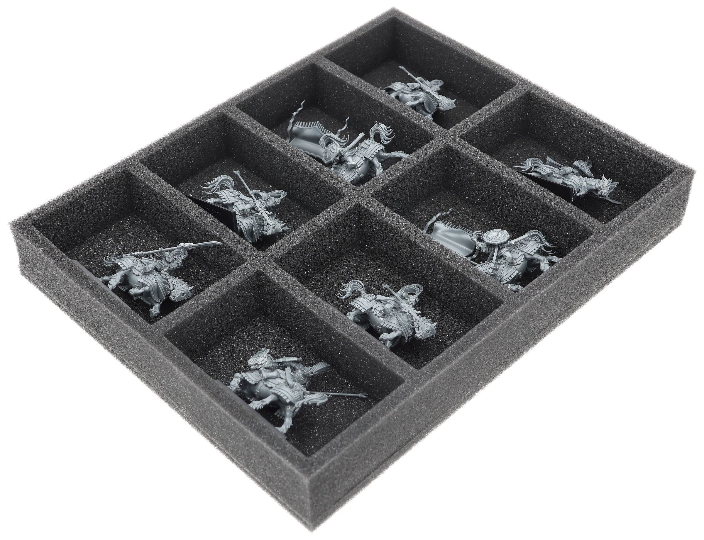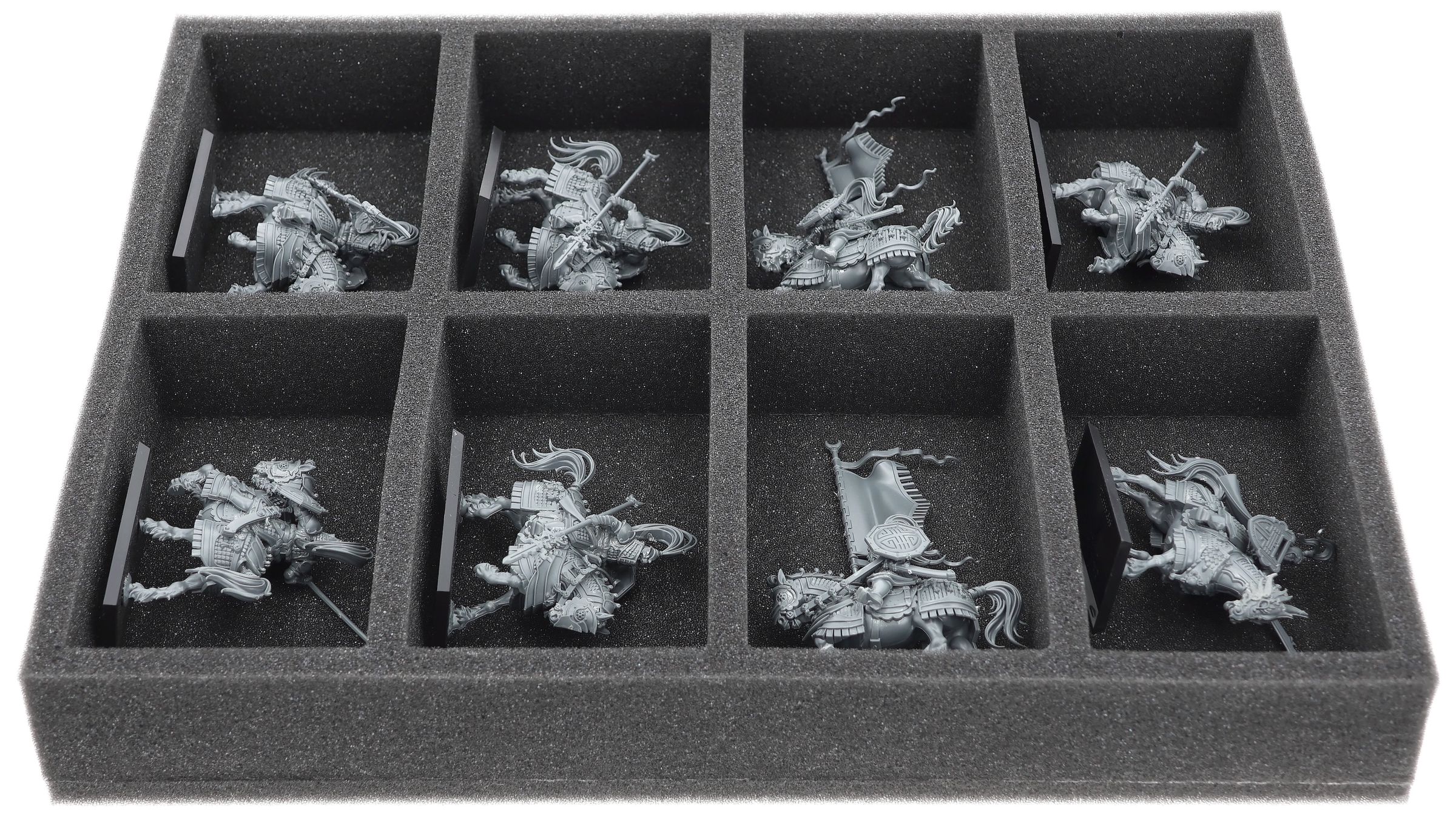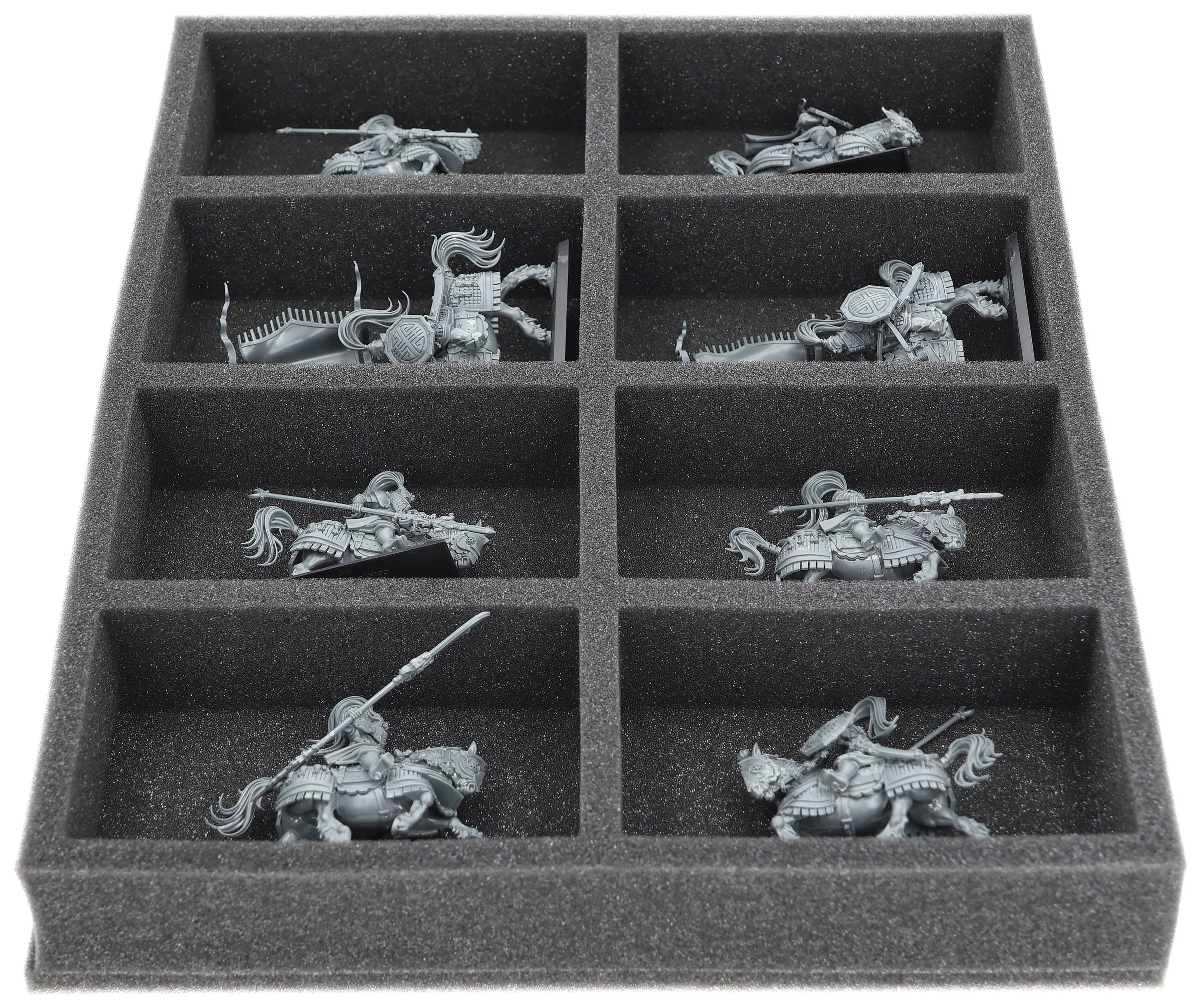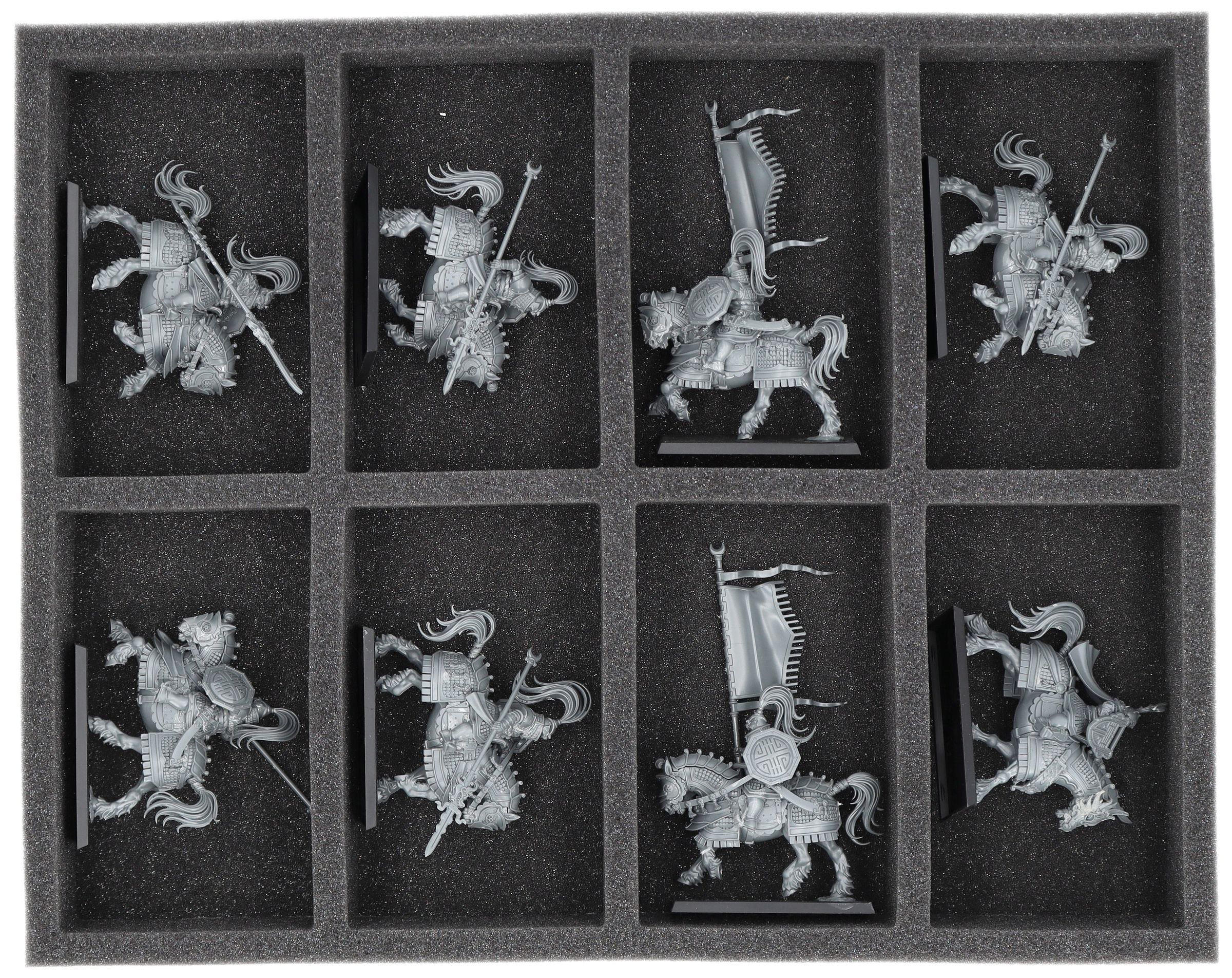 On this Feldherr foam tray you have space for up to 8 miniatures of your army. The insert is especially suitable for storing the Jade Lancers and similar sized models.