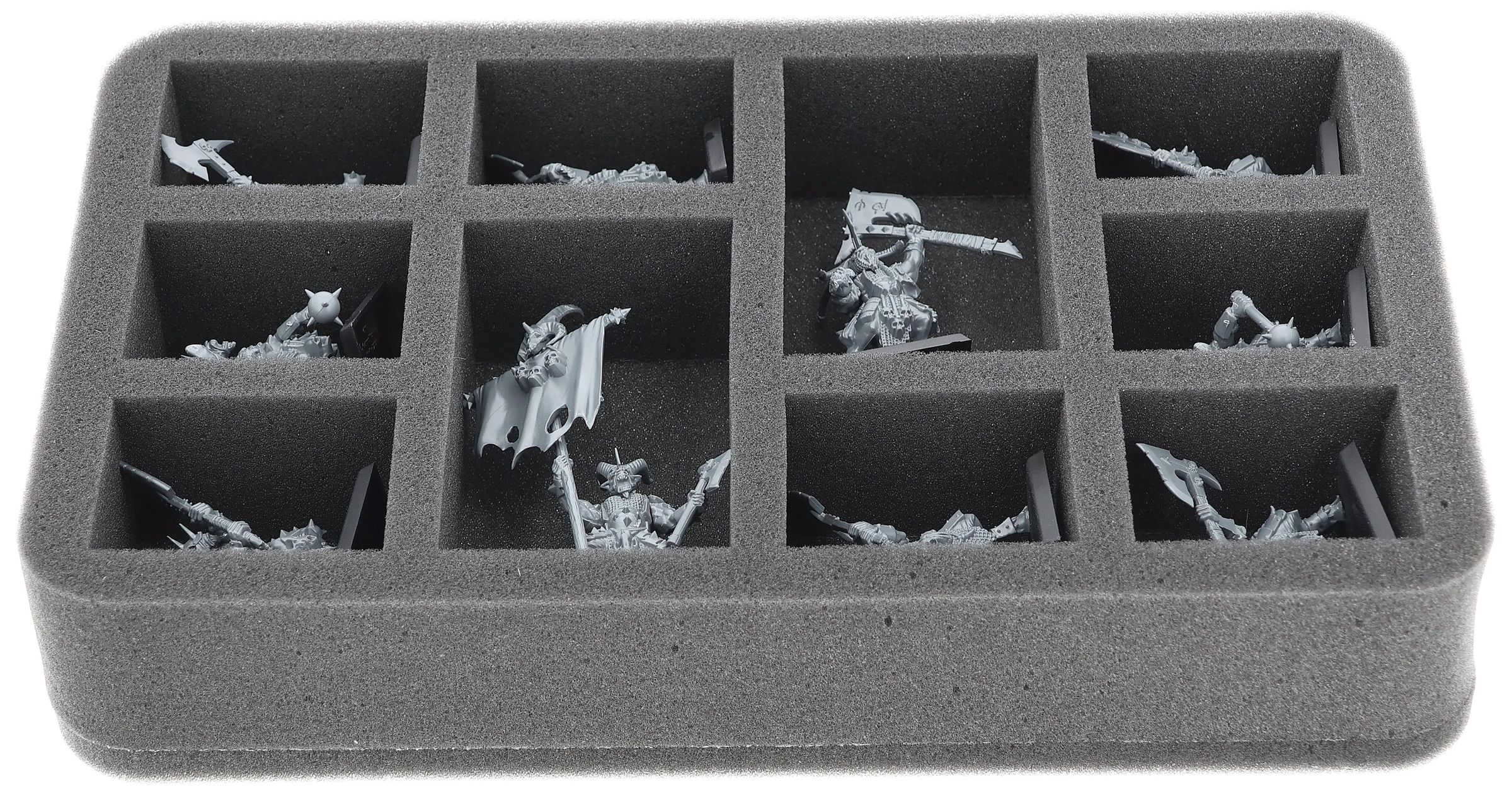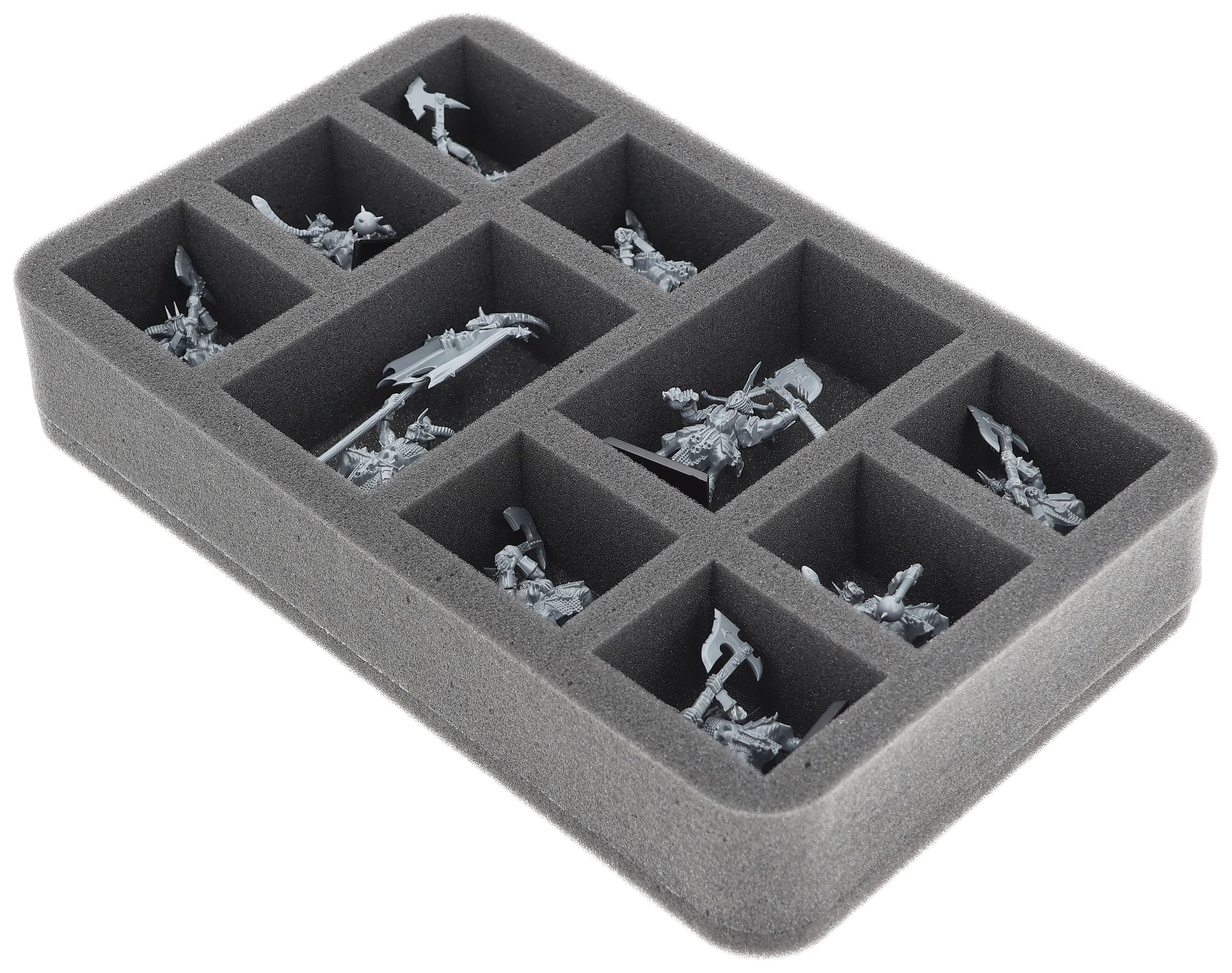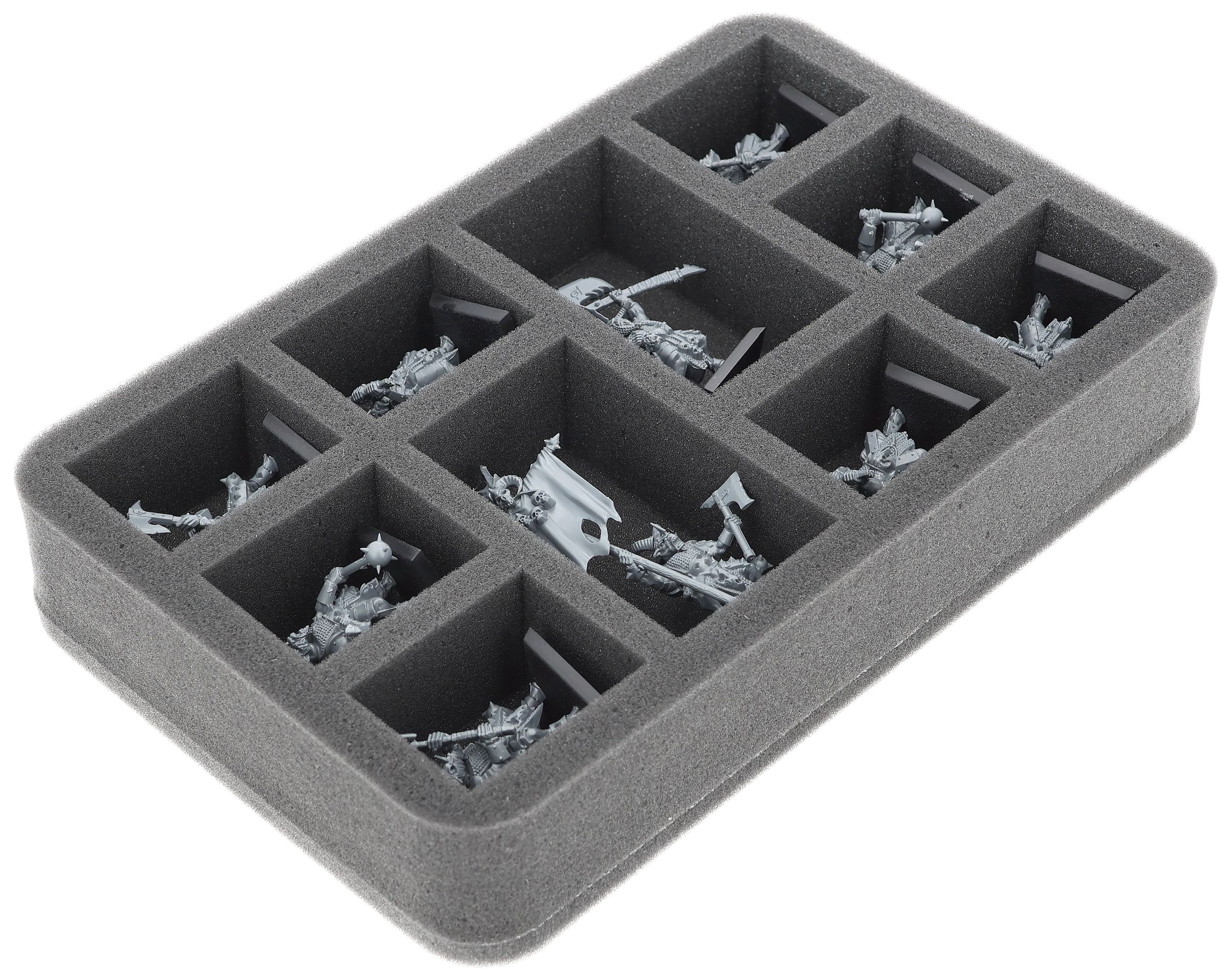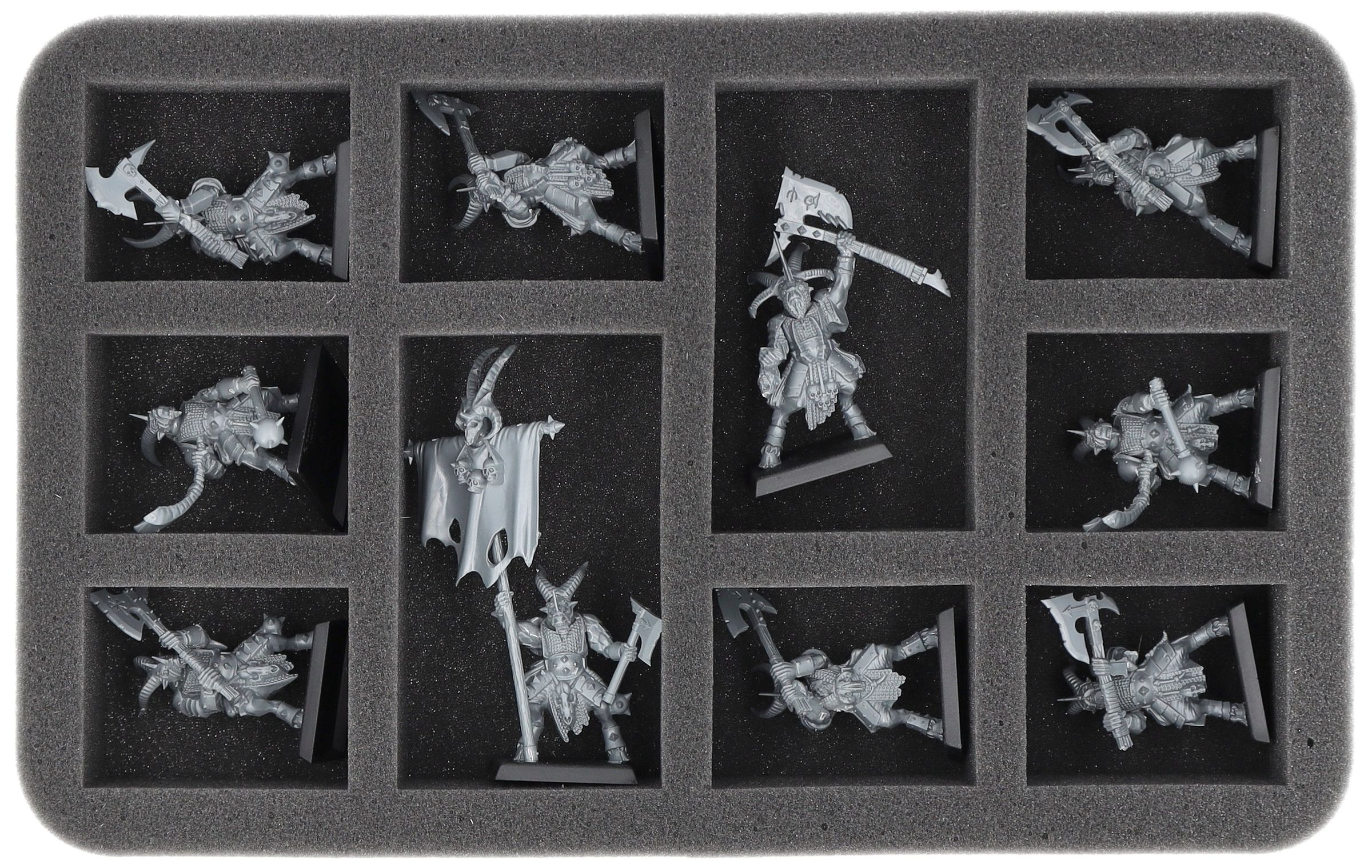 On this Feldherr foam tray you have space for up to 10 miniatures of your army. The insert is especially suitable for storing the Gor Herd, Bestigor Herd and similar sized models.