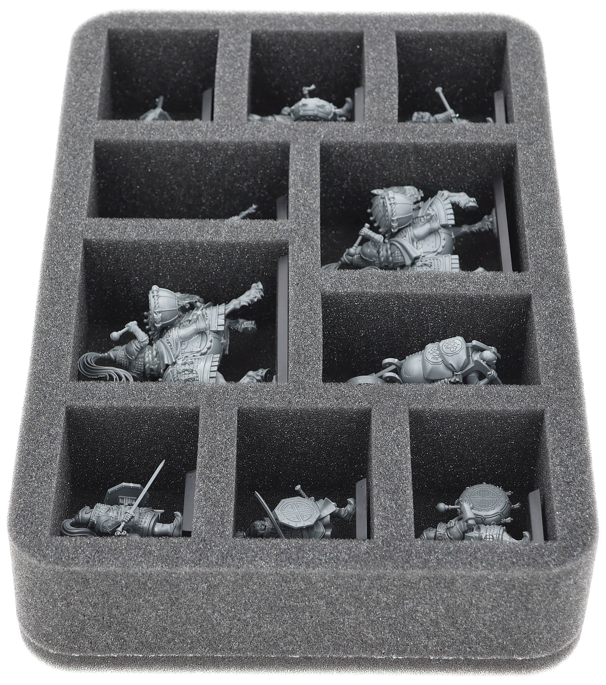 On this Feldherr foam tray you have space for up to 10 miniatures of your army. The insert is especially suitable for storing the Jade Warriors, Jade Lancers, Musician and similar sized models.