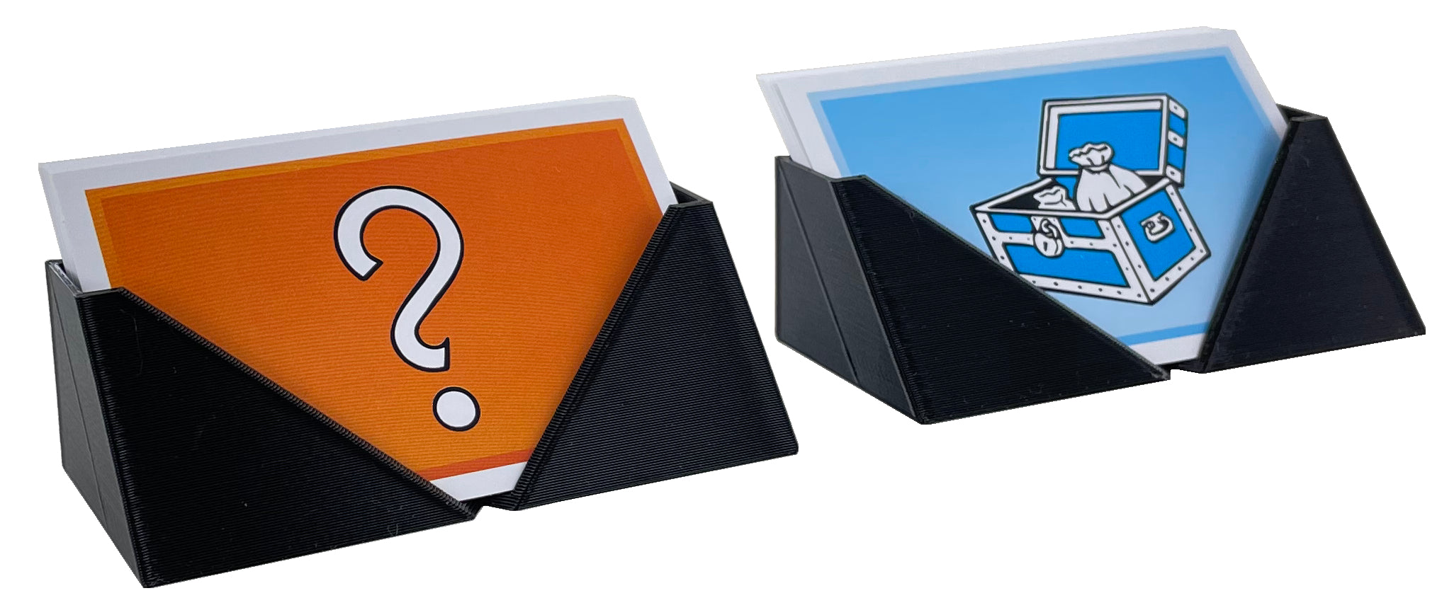 Convenient card holder for the gaming table to store the Monopoly Chance and Community Chest cards.