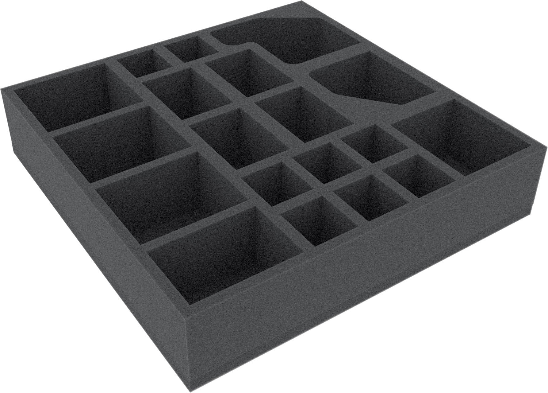 Bandeja de espuma especial para Super Dungeon Explore - Forgotten King. Los 19 compartimentos de diferentes tamaños son adecuados para todo el material de juego imaginable.