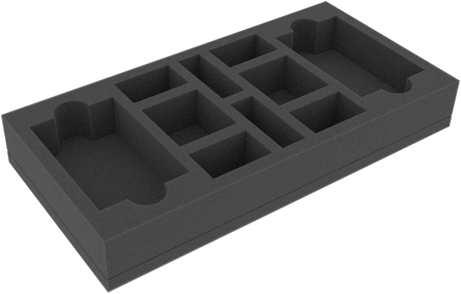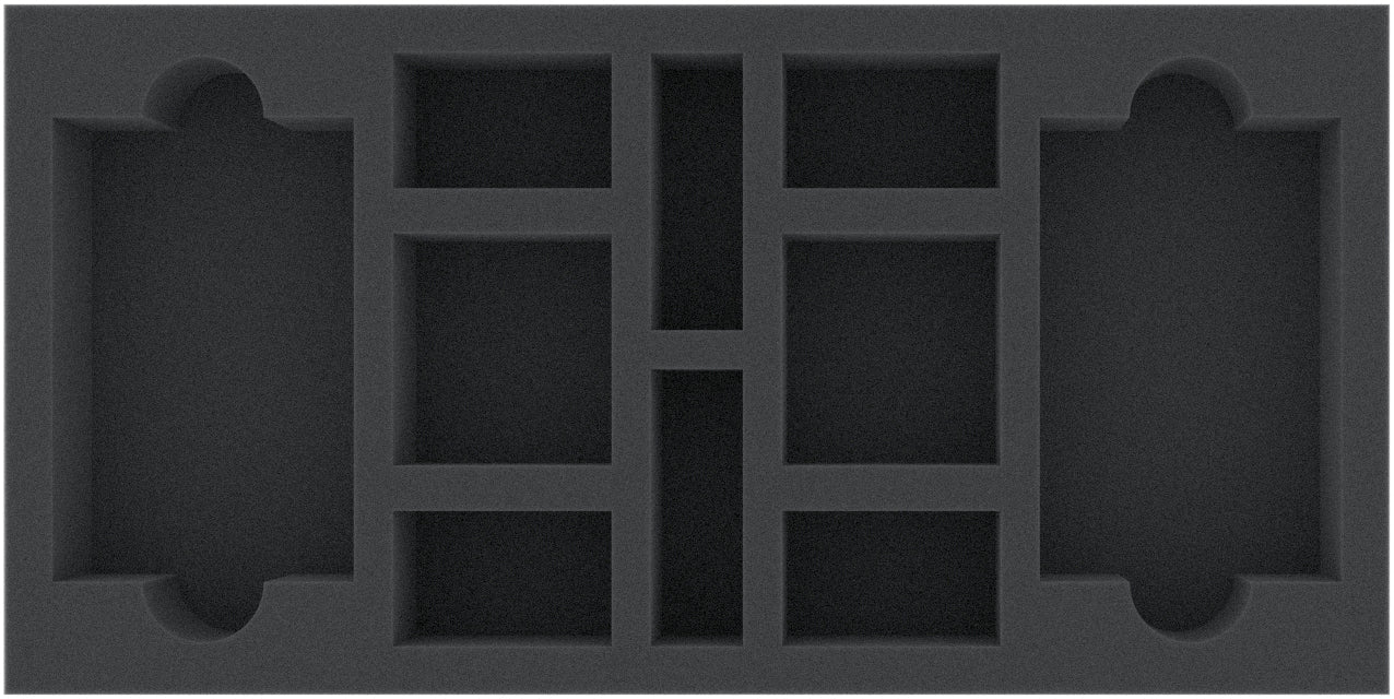 This 40 mm mm high foam tray is divided into 14 compartments. It is particularly suitable for the safe storage of tabletop and board game miniatures, as well as other fragile models and small parts.