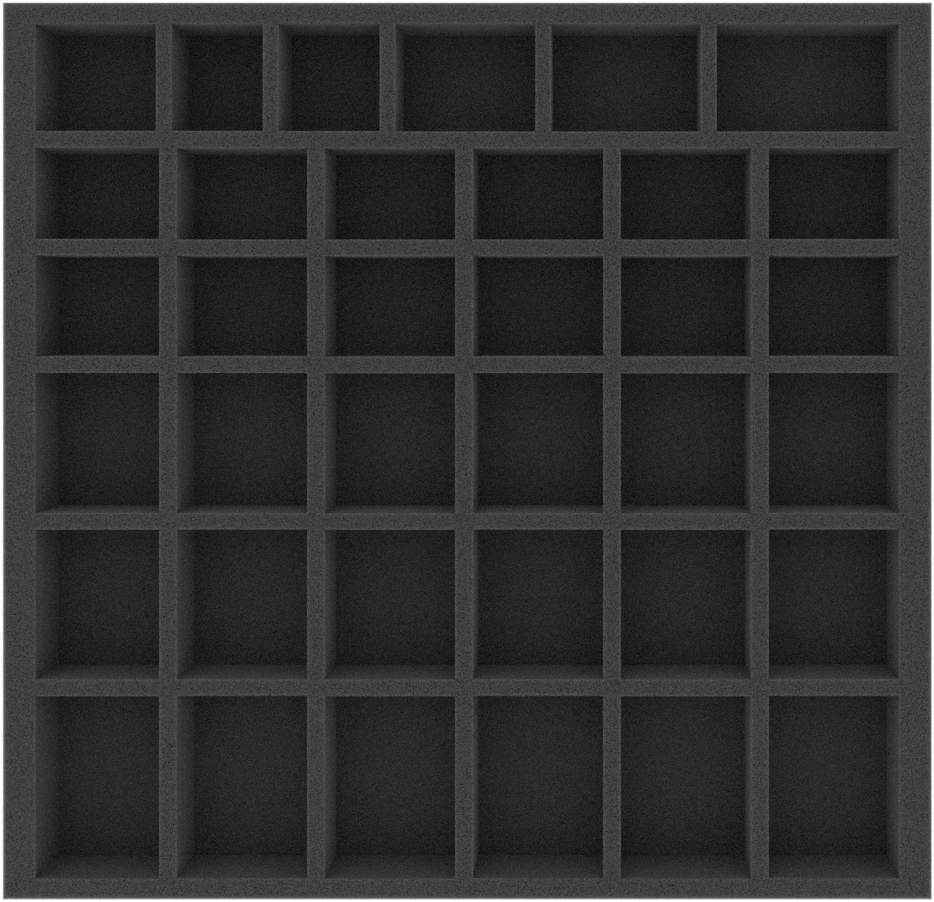 This foam insert has 36 compartments which allow you to organize and store small Gloomhaven game material like tokens, discs and standees.