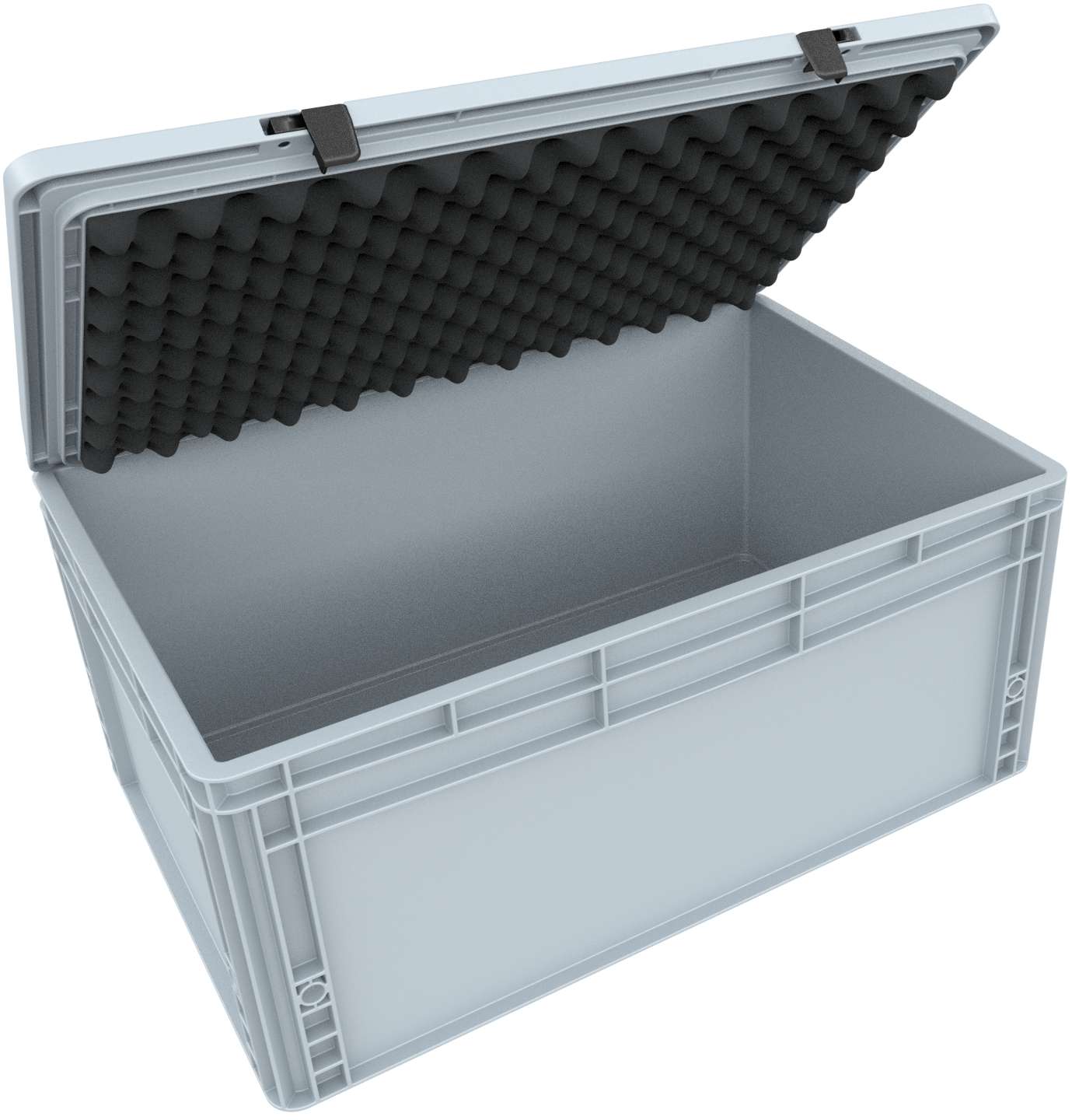 The foam CFNP020S is ideally suited for this purpose. It is cut to fit the HD 64/xx Auer Eurobox series. Because the nap foam has a self-adhesive function, you do not need any further tools only a few seconds to remove the cover foil and place the self-adhesive side in the hinged cover of the Eurobox. The CFNP020 is compatible with any Auer box which has a hinged top with the outer dimensions 600 mm x 400 mm.