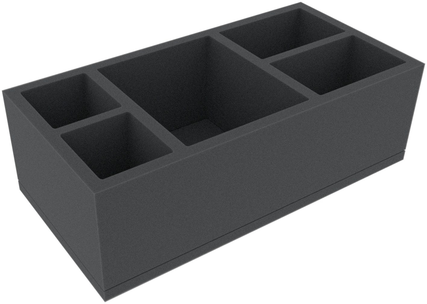 This 95 mm high foam tray is divided into 5 compartments. It is particularly suitable for the safe storage of tabletop and board game miniatures, as well as other fragile models and small parts.