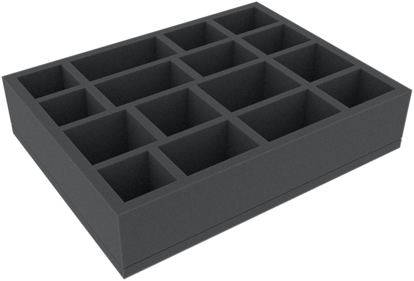 This 60 mm high foam tray is divided into 16 compartments. It is particularly suitable for the safe storage of tabletop and board game miniatures, as well as other fragile models and small parts.